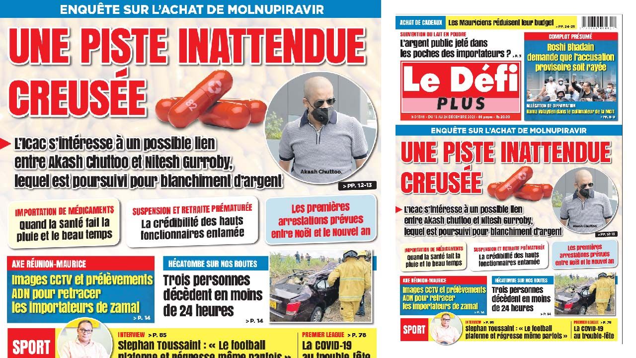 L’enquête de l’Icac sur l’achat de Molnupiravir par le ministère de la Santé a pris un tour inattendu. Une équipe de limiers creuse pour établir s’il y a un quelconque lien entre Akash Chuttoo, Thasyl Kumar Chuttoo et Nitesh Gurroby. Ce dernier a été épinglé en mai par la commission anticorruption dans une affaire de blanchiment d’argent présumé.