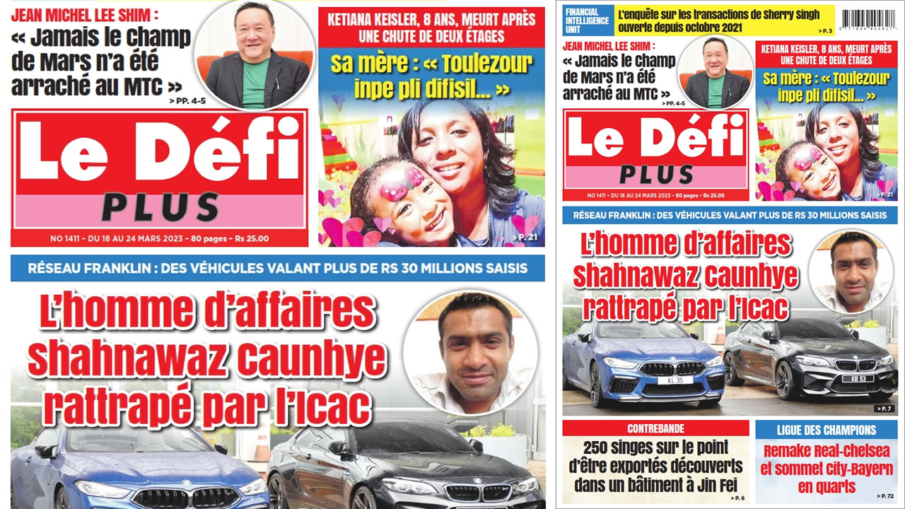 ? Voici la Une du Défi Plus. Le journal est en vente à Rs 25 l'exemplaire aux endroits habituels (supermarchés, boutiques, tabagies, superettes). Bonne lecture !