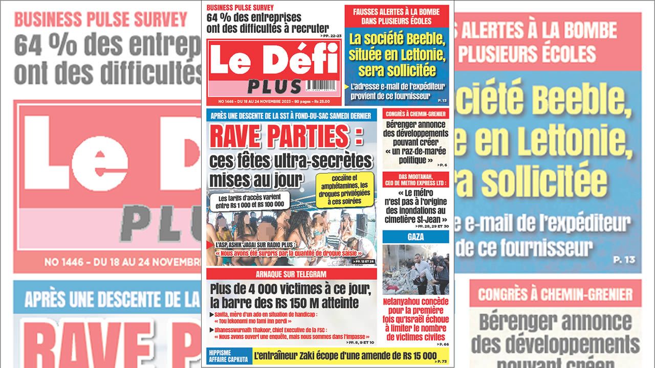 ? Voici la Une du Défi Plus. Le journal est en vente à Rs 25 l'exemplaire aux endroits habituels (supermarchés, boutiques, tabagies, superettes). Bonne lecture !