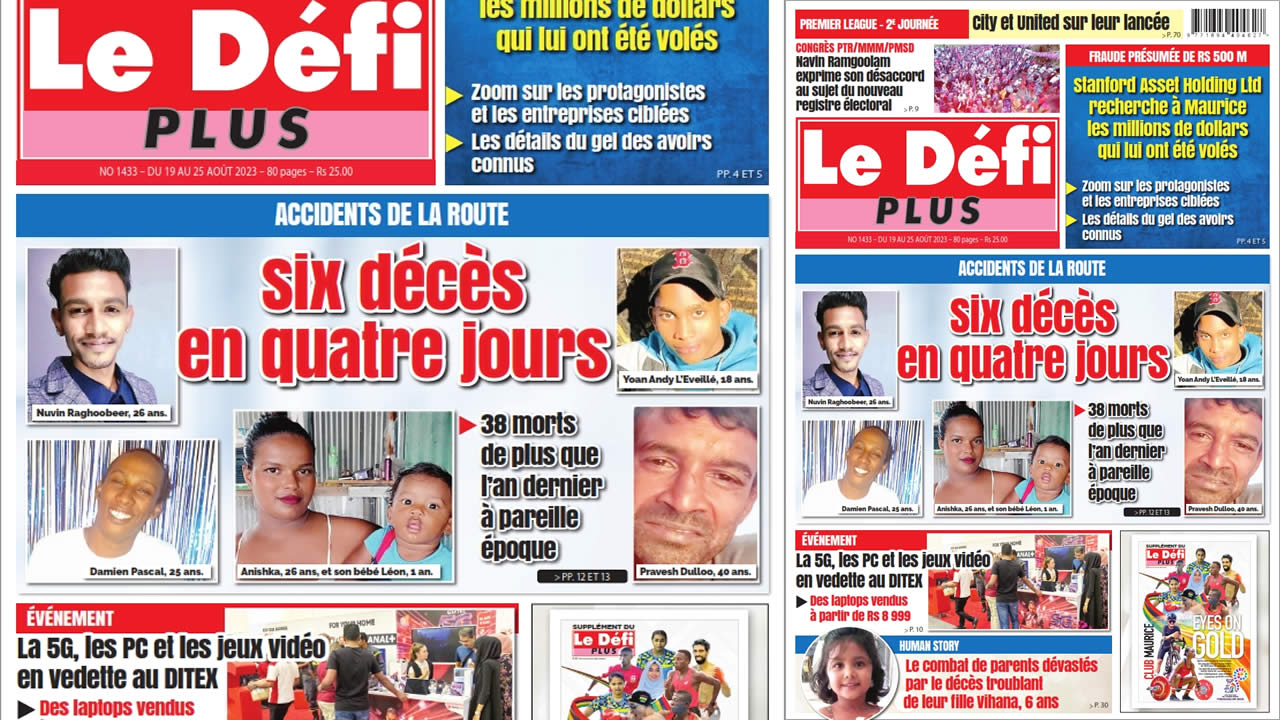 ? Voici la Une du Défi Plus. Le journal est en vente à Rs 25 l'exemplaire aux endroits habituels (supermarchés, boutiques, tabagies, superettes). Bonne lecture !