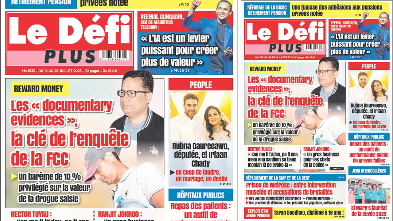 ? Voici la Une du Défi Plus. Le journal est en vente à Rs 25 l'exemplaire aux endroits habituels (supermarchés, boutiques, tabagies, superettes). Bonne lecture !