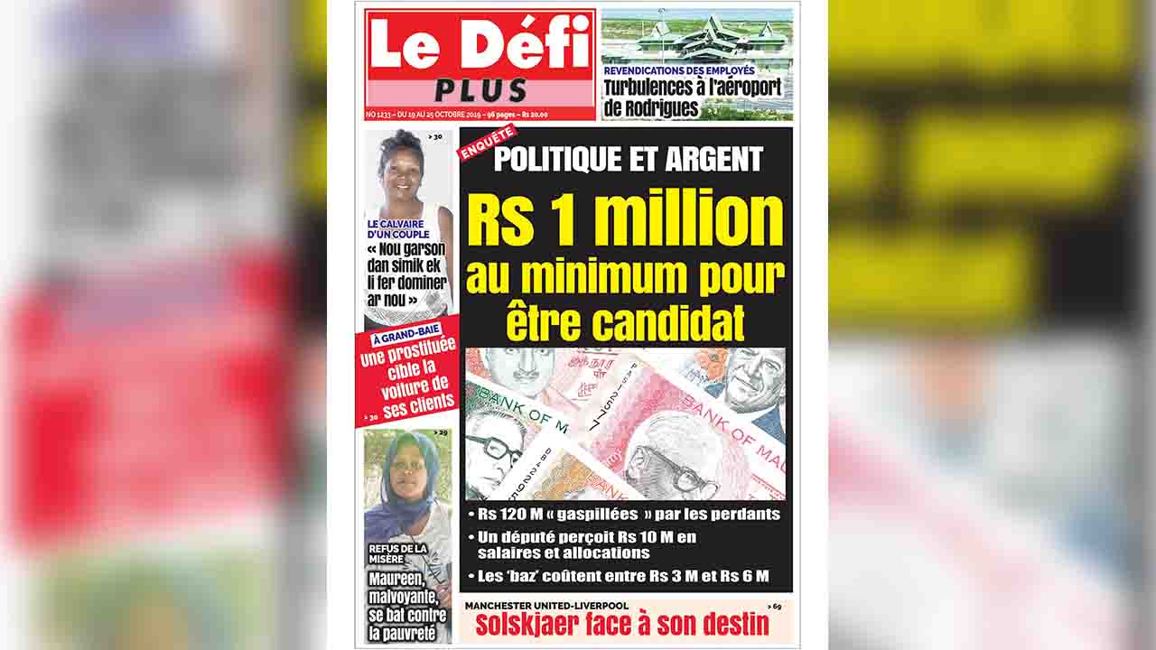 Voici la Une du Défi Plus de ce samedi 19 octobre 2019
