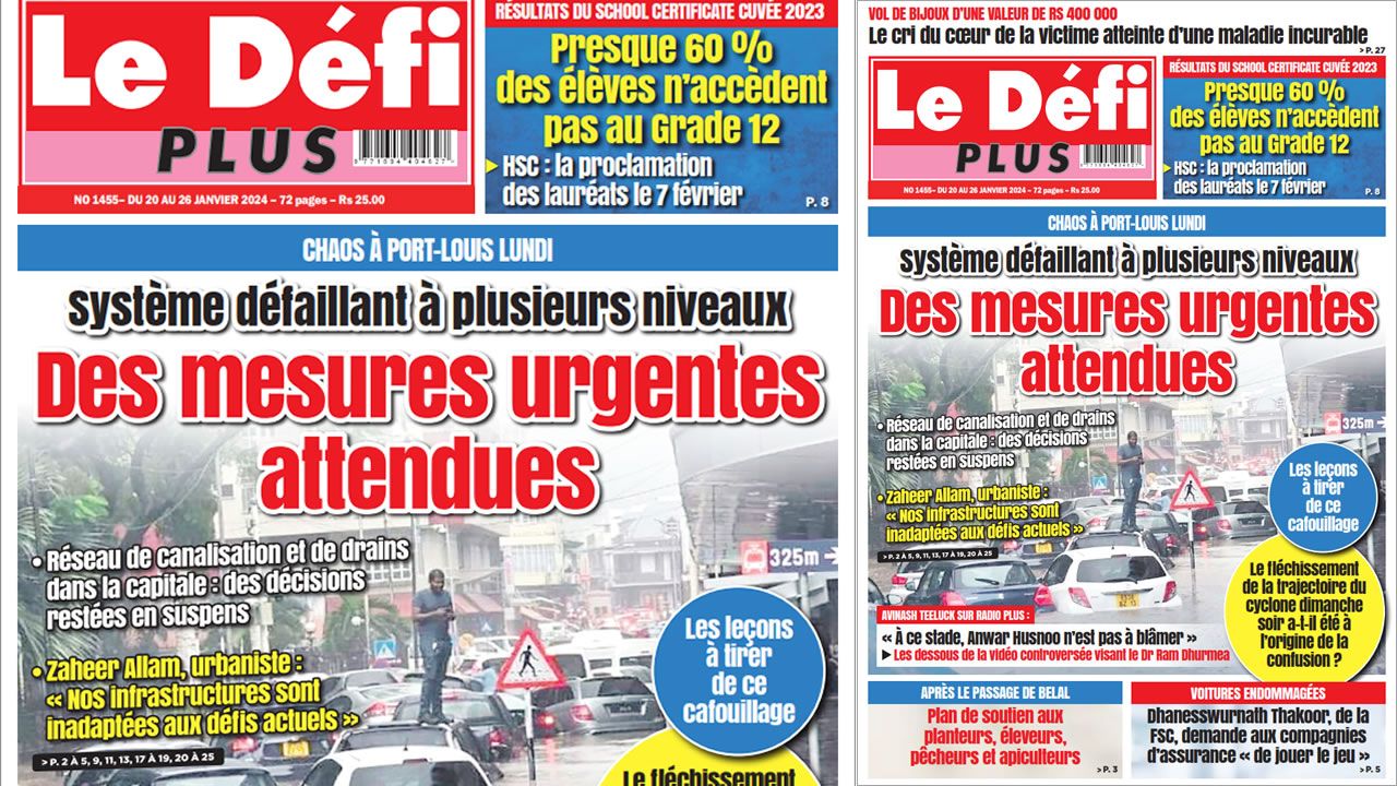 ? Voici la Une du Défi Plus. Le journal est en vente à Rs 25 l'exemplaire aux endroits habituels (supermarchés, boutiques, tabagies, superettes). Bonne lecture !