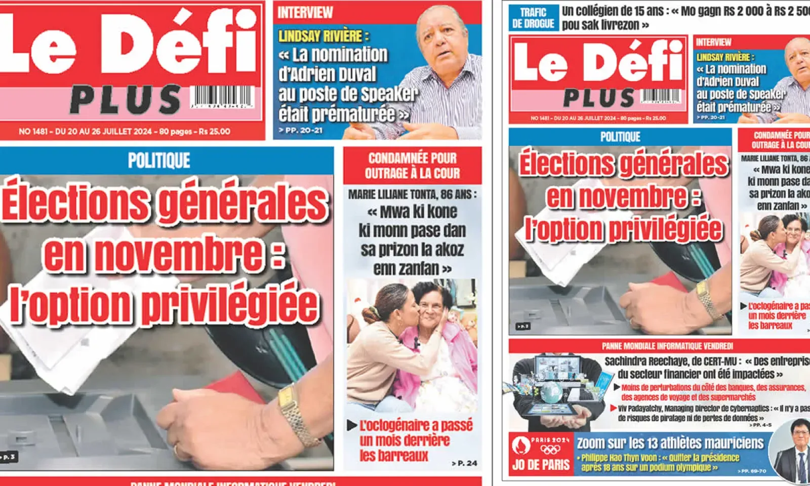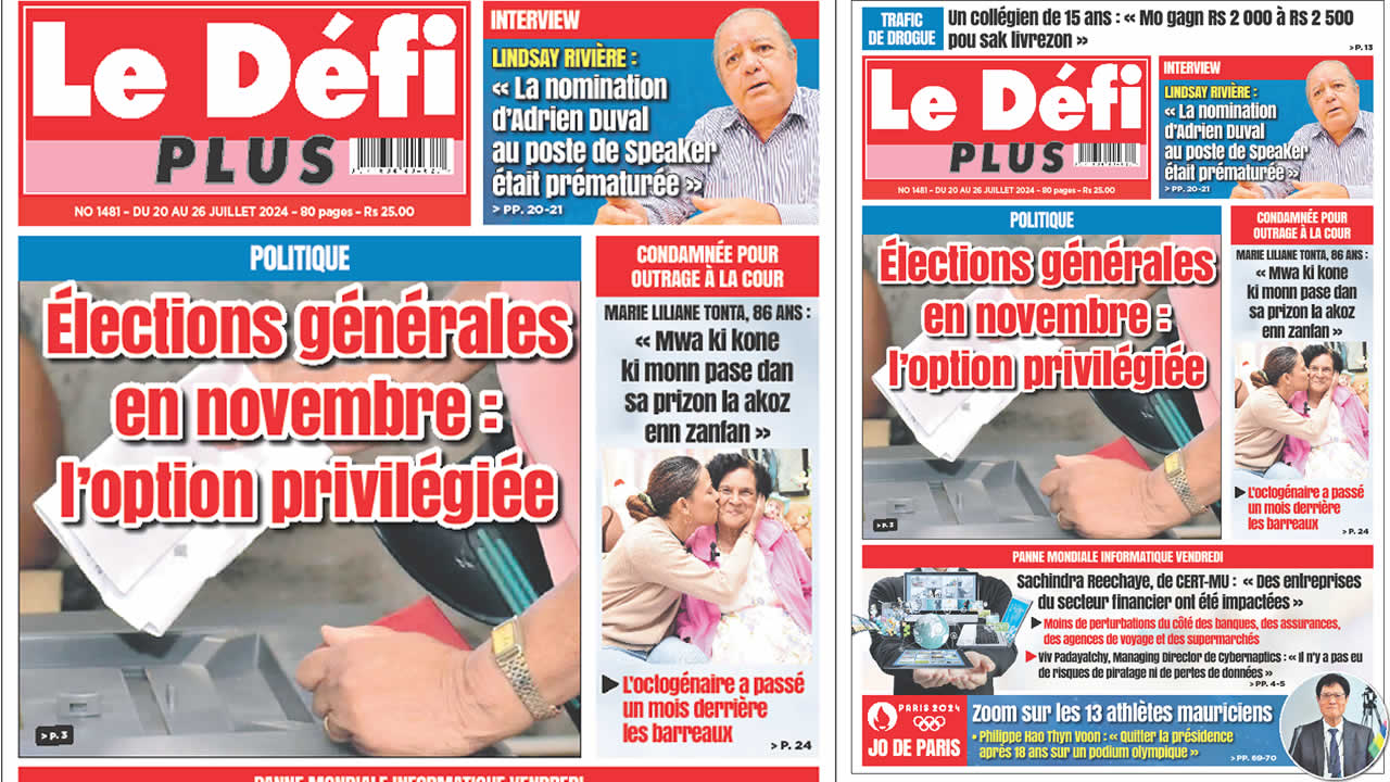 ? Voici la Une du Défi Plus. Le journal est en vente à Rs 25 l'exemplaire aux endroits habituels (supermarchés, boutiques, tabagies, superettes). Bonne lecture !