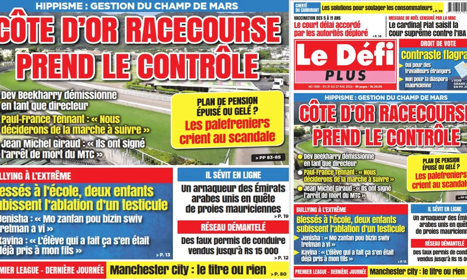 ? Voici la Une du Défi Plus. Le journal est en vente à Rs 20 l'exemplaire aux endroits habituels (supermarchés, boutiques, tabagies, superettes). Bonne lecture !