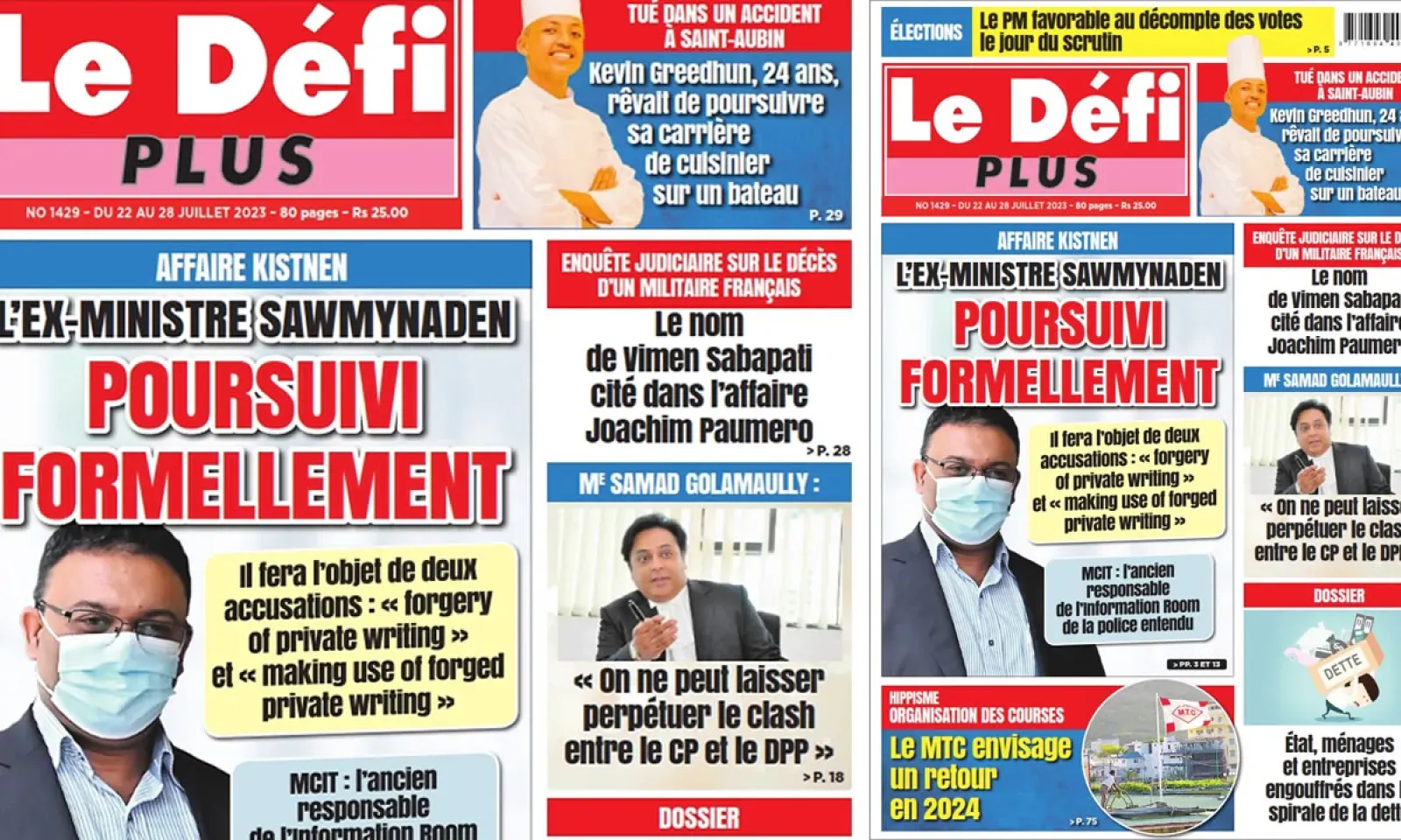 ? Voici la Une du Défi Plus. Le journal est en vente à Rs 25 l'exemplaire aux endroits habituels (supermarchés, boutiques, tabagies, superettes). Bonne lecture !