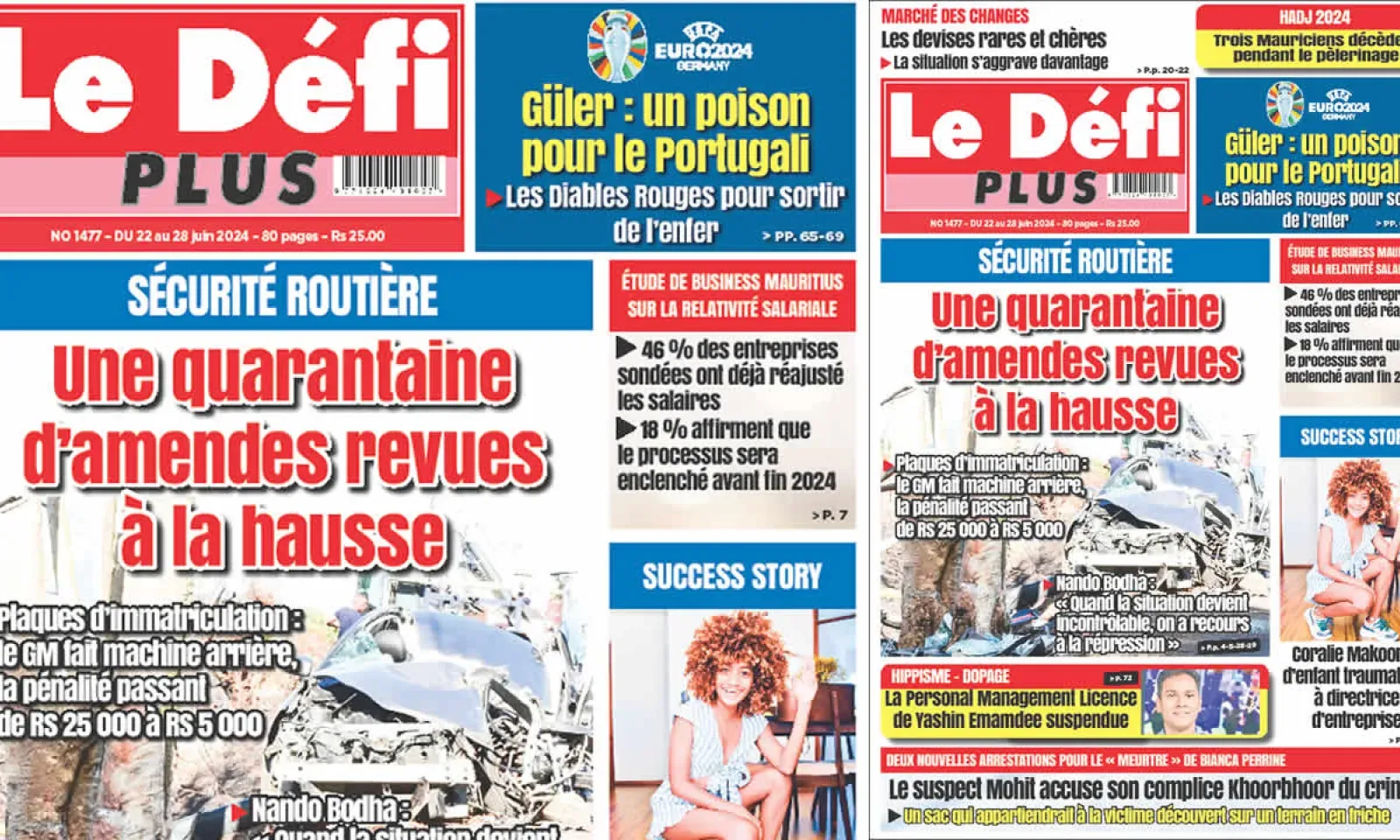 ? Voici la Une du Défi Plus. Le journal est en vente à Rs 25 l'exemplaire aux endroits habituels (supermarchés, boutiques, tabagies, superettes). Bonne lecture !