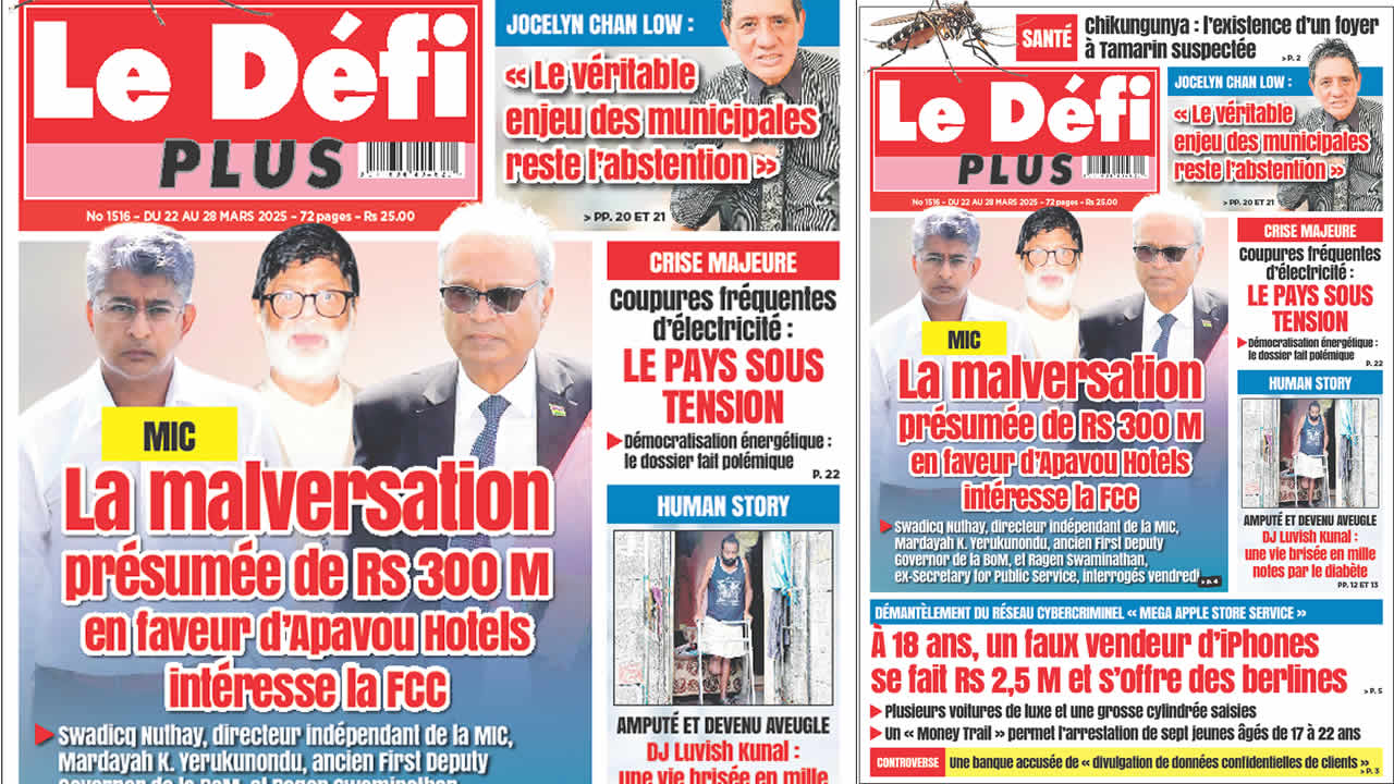 Image Voici la Une du Défi Plus. Le journal est en vente à Rs 25 l'exemplaire aux endroits habituels (supermarchés, boutiques, tabagies, superettes). Bonne lecture ! Publicité View the discussion thread.