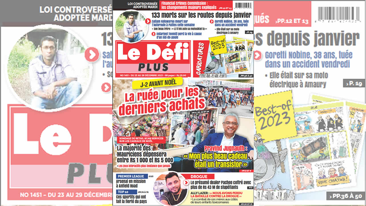 ? Voici la Une du Défi Plus. Le journal est en vente à Rs 25 l'exemplaire aux endroits habituels (supermarchés, boutiques, tabagies, superettes). Bonne lecture !