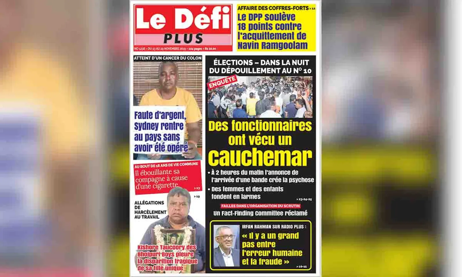Voici la Une du Défi Plus de ce samedi 23 novembre 2019