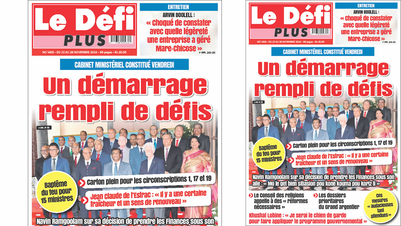 Voici la Une du Défi Plus. Le journal est en vente à Rs 25 l'exemplaire aux endroits habituels (supermarchés, boutiques, tabagies, superettes). Bonne lecture !