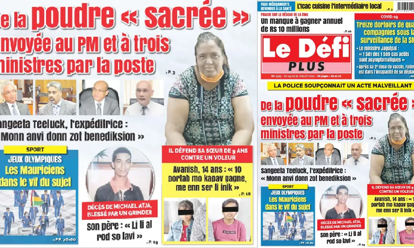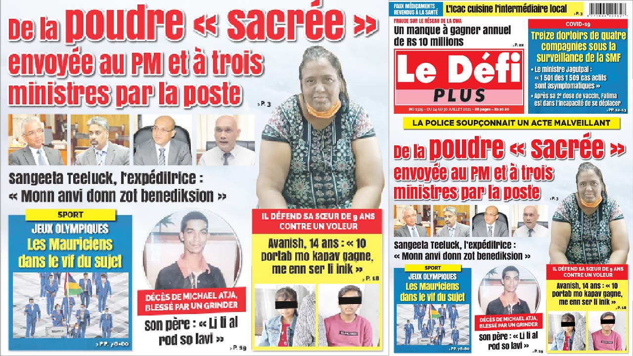 La POLICE SOUPÇONNAIT UNE ACTE MALVEILLANT - DE LA POUDRE « SACRÉES » ENVOYÉE AU PM ET À TROIS MINISTRES - Sangeeta Teeluck, l’expéditrice : « Monn anvi donn zot benediksyon »