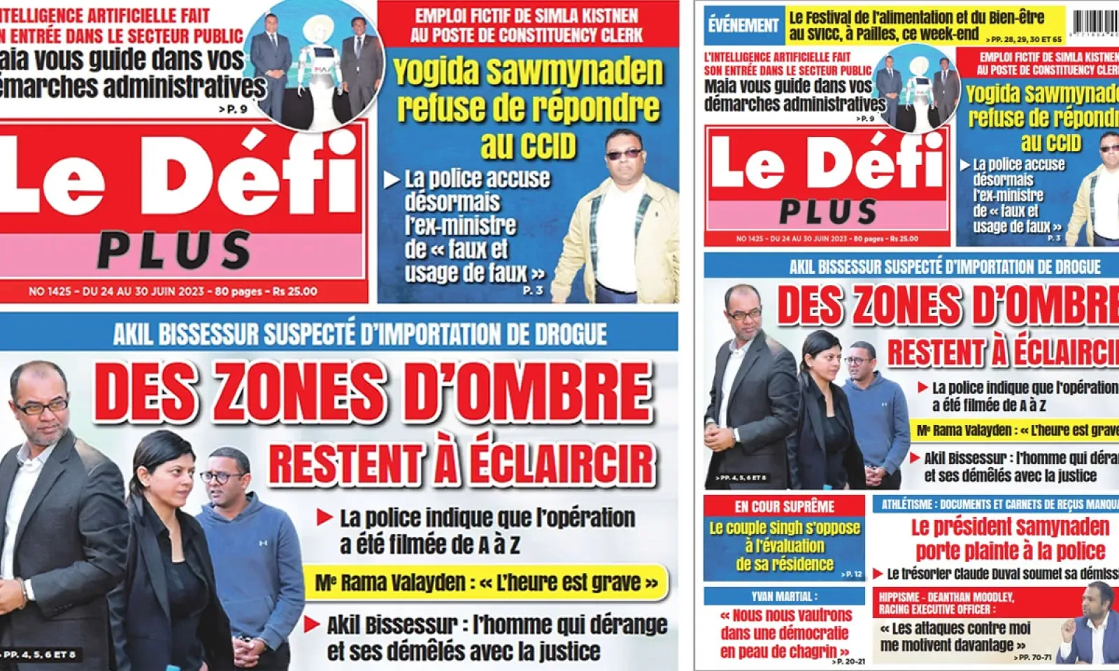 ? Voici la Une du Défi Plus. Le journal est en vente à Rs 25 l'exemplaire aux endroits habituels (supermarchés, boutiques, tabagies, superettes). Bonne lecture !