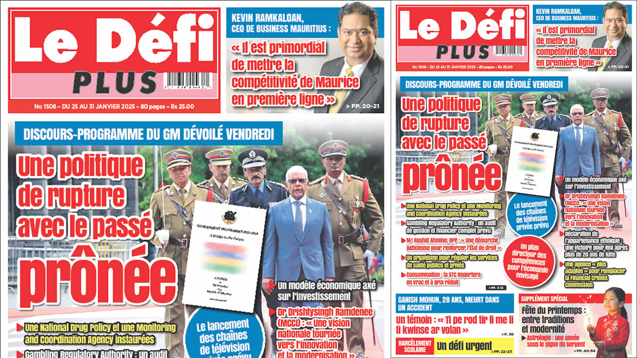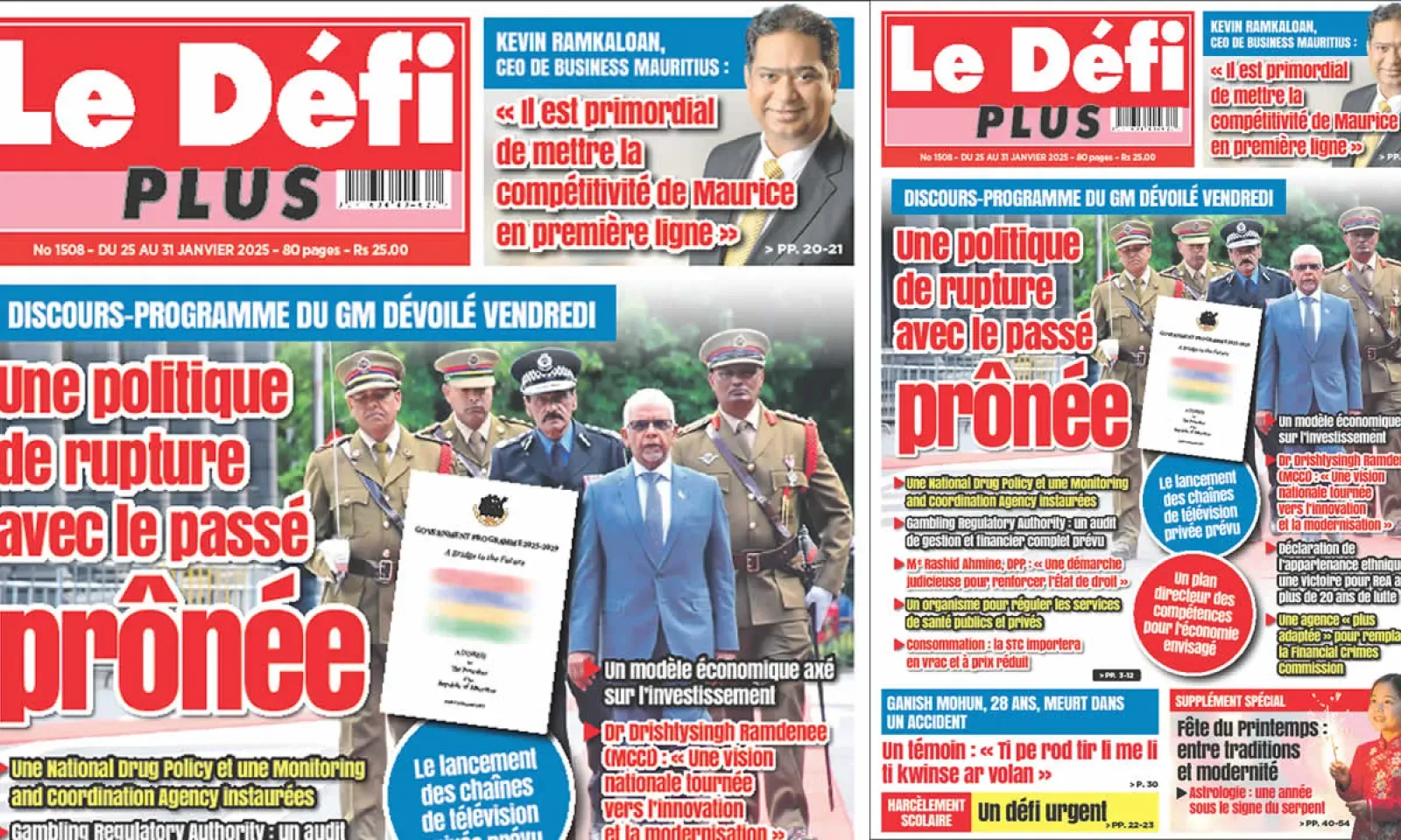 Image Voici la Une du Défi Plus. Le journal est en vente à Rs 25 l'exemplaire aux endroits habituels (supermarchés, boutiques, tabagies, superettes). Bonne lecture ! Publicité View the discussion thread.
