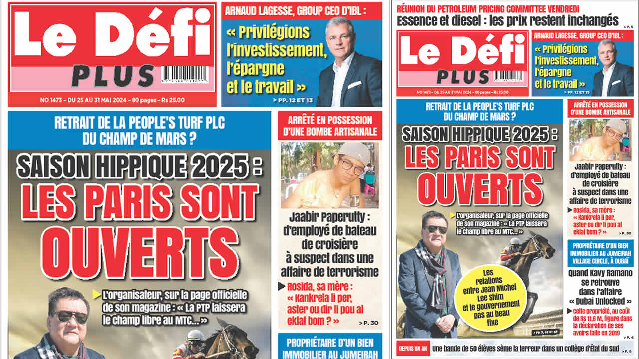? Voici la Une du Défi Plus. Le journal est en vente à Rs 25 l'exemplaire aux endroits habituels (supermarchés, boutiques, tabagies, superettes). Bonne lecture !