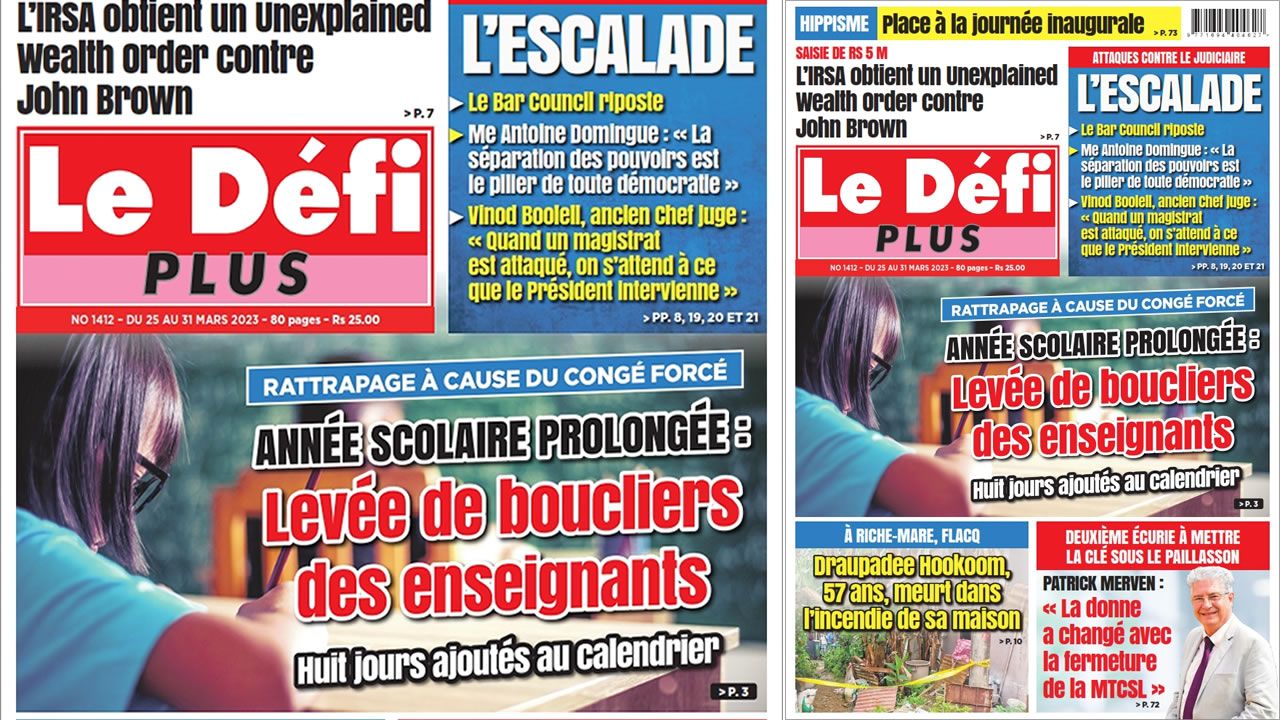 Voici la Une du Défi Plus de ce samedi 25 Mars 2023