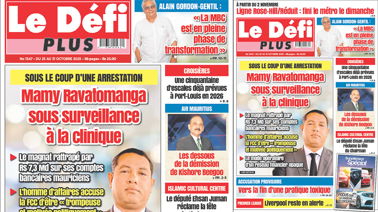 ? Voici la Une du Défi Plus. Le journal est en vente à Rs 25 l'exemplaire aux endroits habituels (supermarchés, boutiques, tabagies, superettes). Bonne lecture !