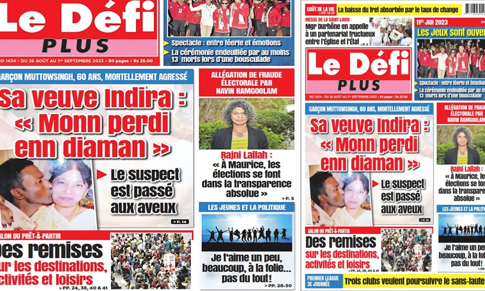 ? Voici la Une du Défi Plus. Le journal est en vente à Rs 25 l'exemplaire aux endroits habituels (supermarchés, boutiques, tabagies, superettes). Bonne lecture !