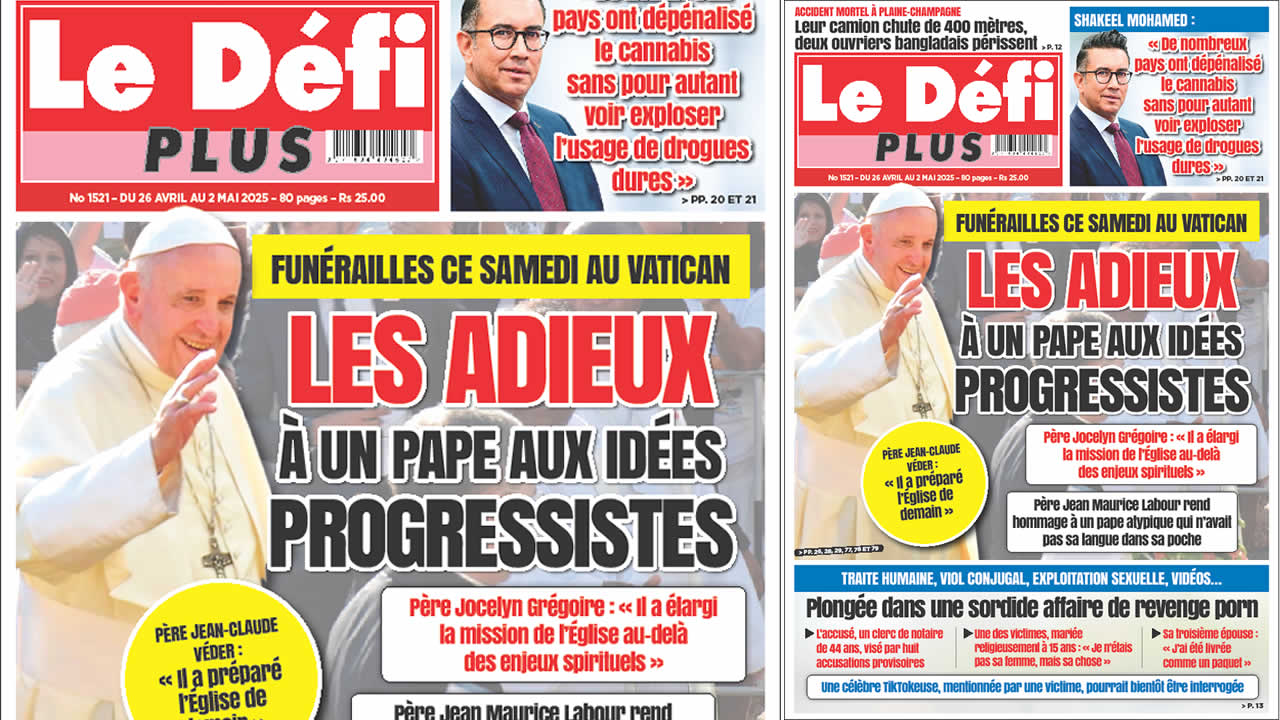 Voici la Une du Défi Plus. Le journal est en vente à Rs 25 l'exemplaire aux endroits habituels (supermarchés, boutiques, tabagies, superettes). Bonne lecture !