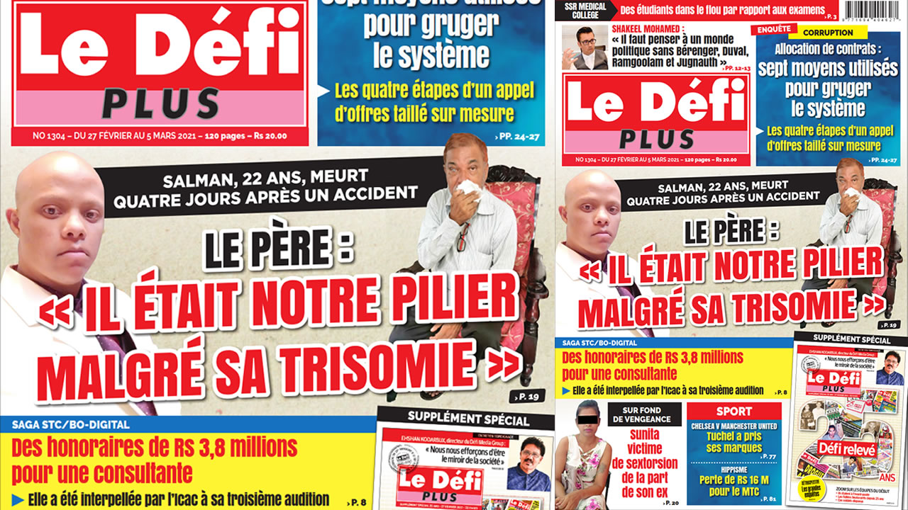 ? Voici la Une du Défi Plus. Le journal est en vente à Rs 20 l'exemplaire aux endroits habituels (supermarchés, boutiques, tabagies, superettes). Bonne lecture !