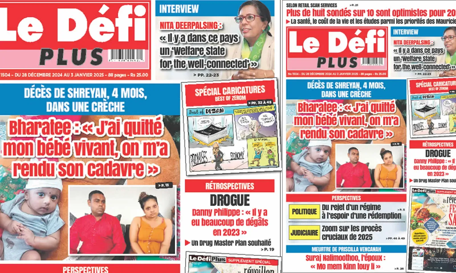Voici la Une du Défi Plus. Le journal est en vente à Rs 25 l'exemplaire aux endroits habituels (supermarchés, boutiques, tabagies, superettes). Bonne lecture !