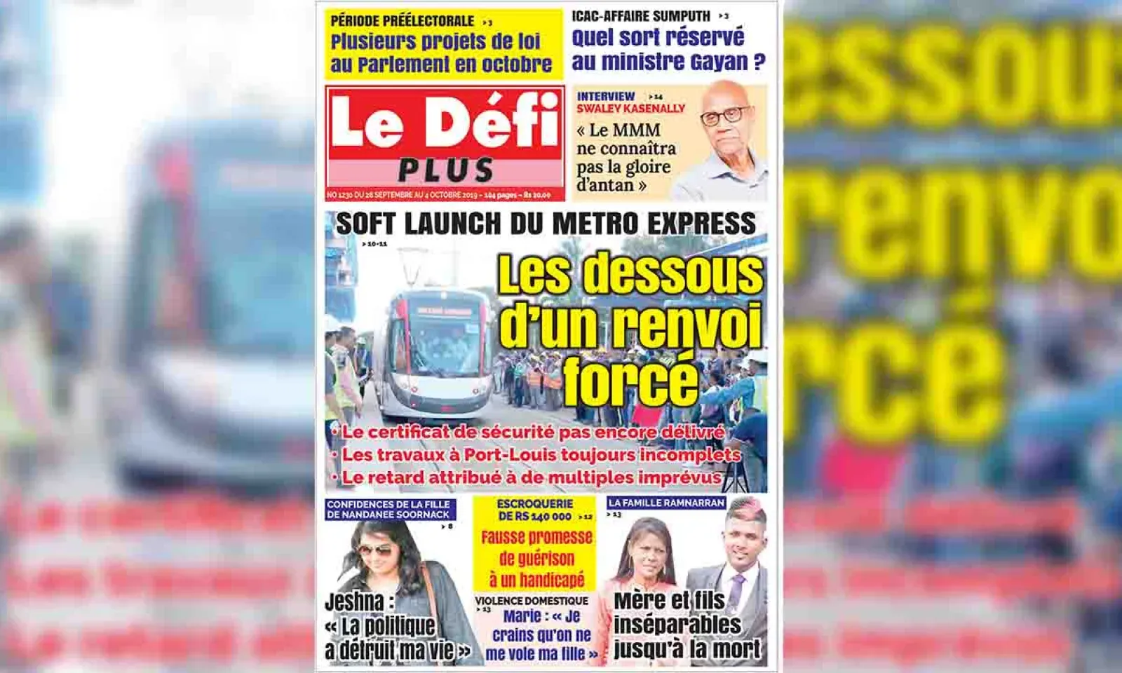 Voici la Une du Défi Plus de ce samedi 28 septembre 2019