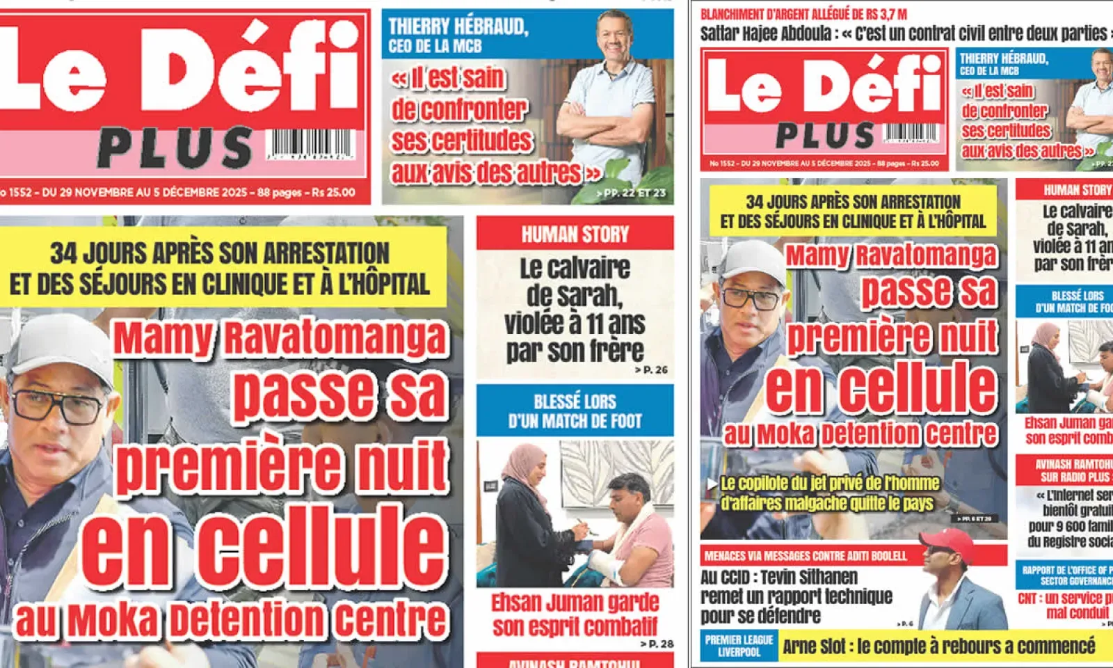 Voici la Une du Défi Plus. Le journal est en vente à Rs 25 l'exemplaire aux endroits habituels (supermarchés, boutiques, tabagies, superettes). Bonne lecture !