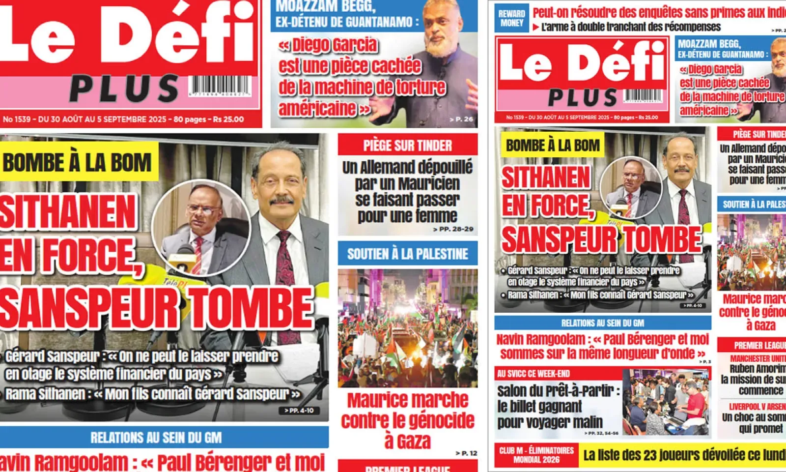 ? Voici la Une du Défi Plus. Le journal est en vente à Rs 25 l'exemplaire aux endroits habituels (supermarchés, boutiques, tabagies, superettes). Bonne lecture !