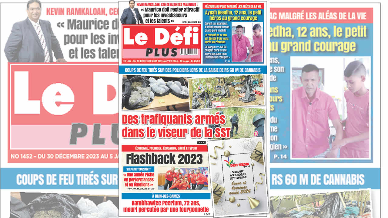 ? Voici la Une du Défi Plus. Le journal est en vente à Rs 25 l'exemplaire aux endroits habituels (supermarchés, boutiques, tabagies, superettes). Bonne lecture !
