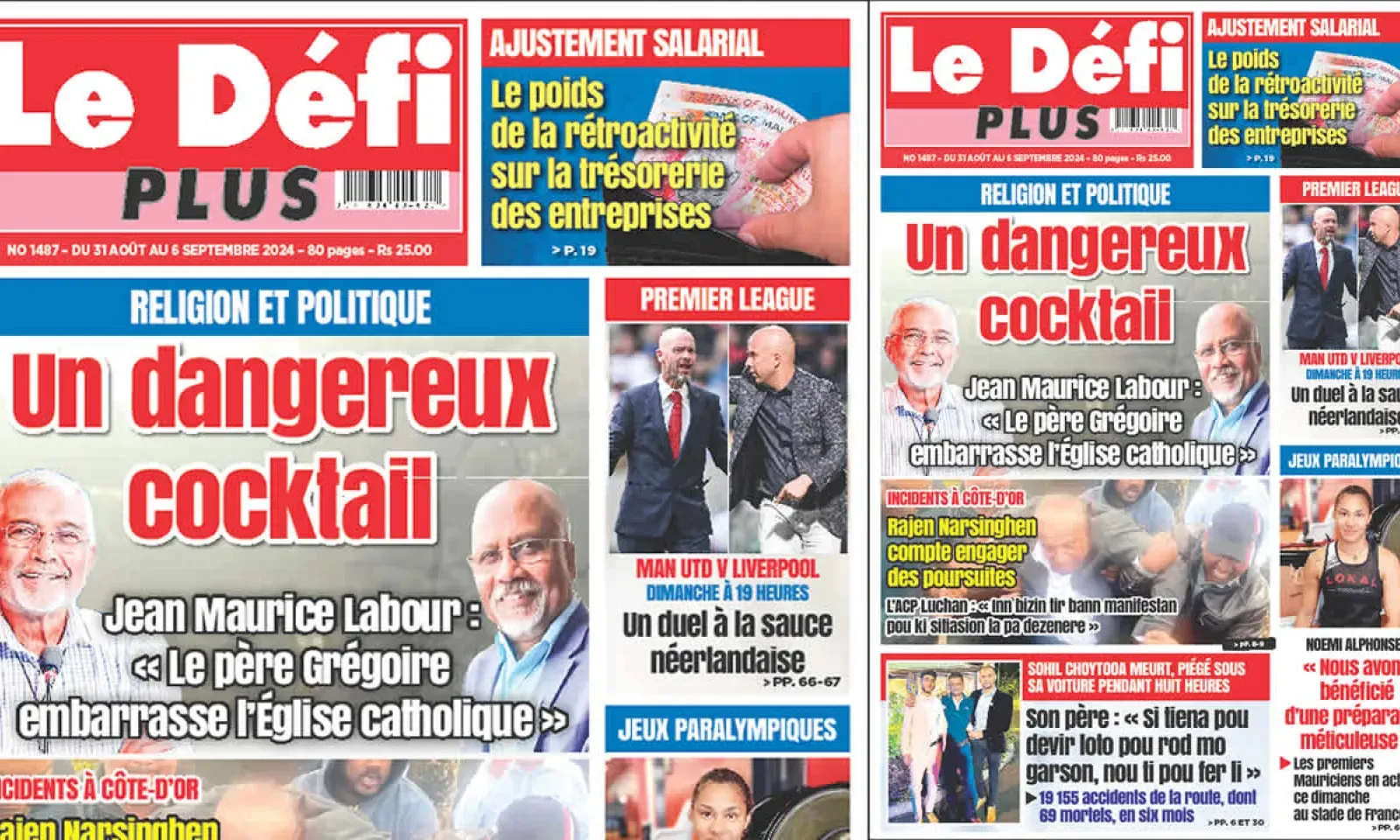 ? Voici la Une du Défi Plus. Le journal est en vente à Rs 25 l'exemplaire aux endroits habituels (supermarchés, boutiques, tabagies, superettes). Bonne lecture !