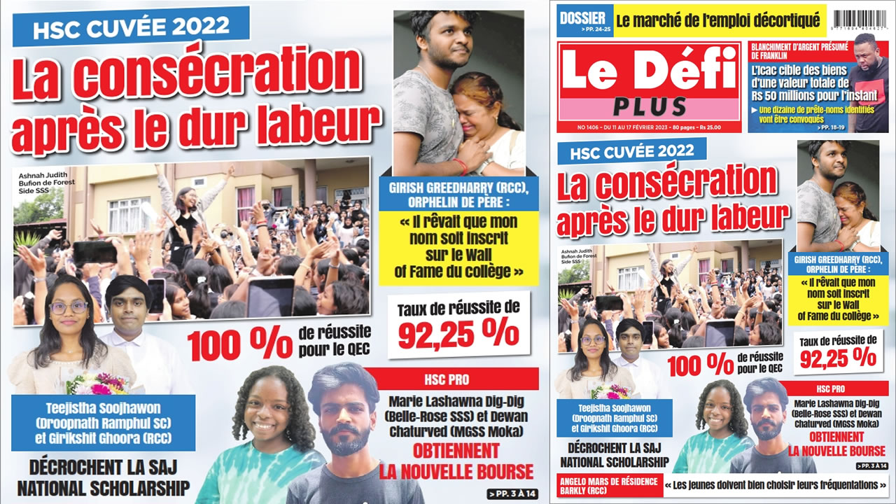 ? Voici la Une du Défi Plus. Le journal est en vente à Rs 25 l'exemplaire aux endroits habituels (supermarchés, boutiques, tabagies, superettes). Bonne lecture !
