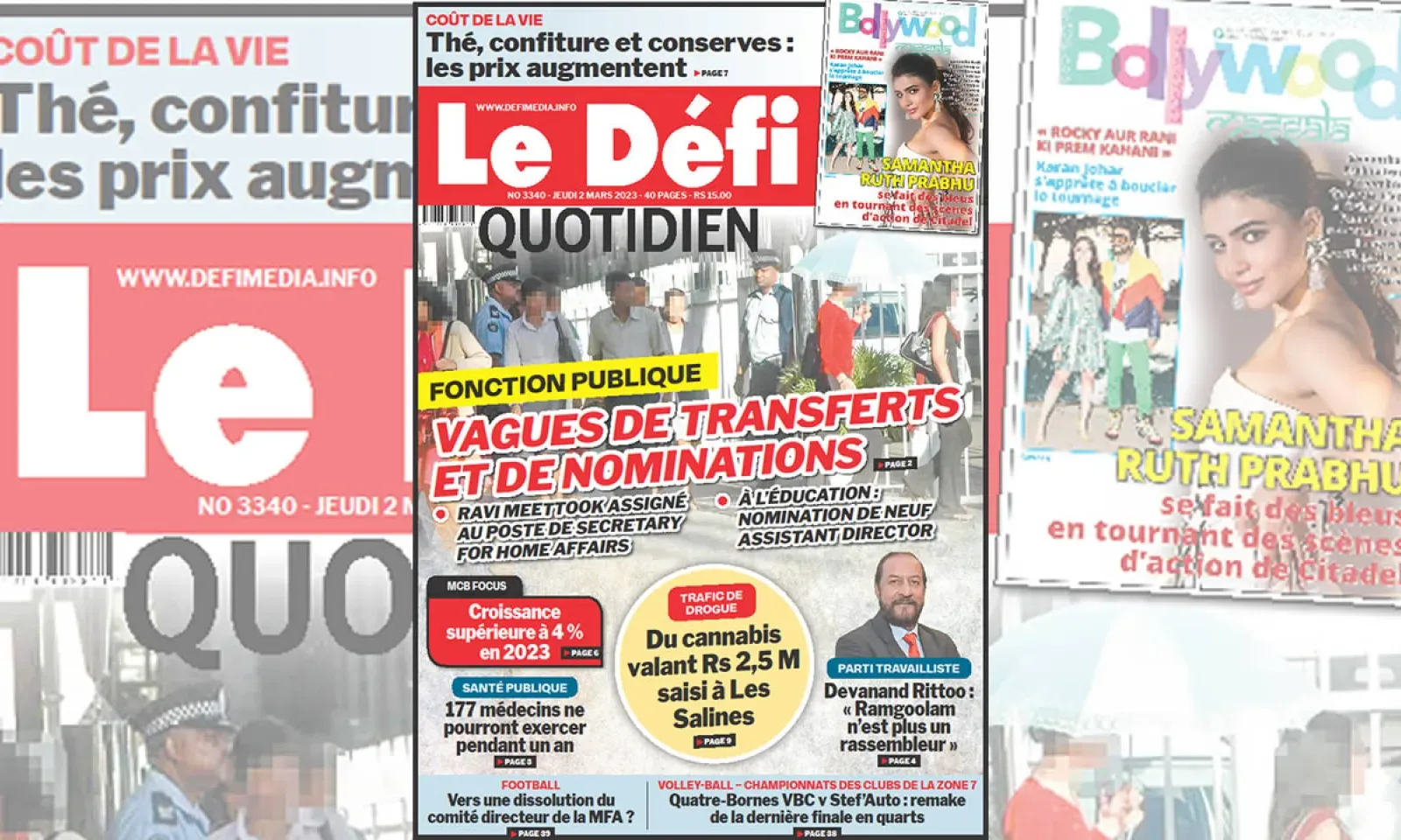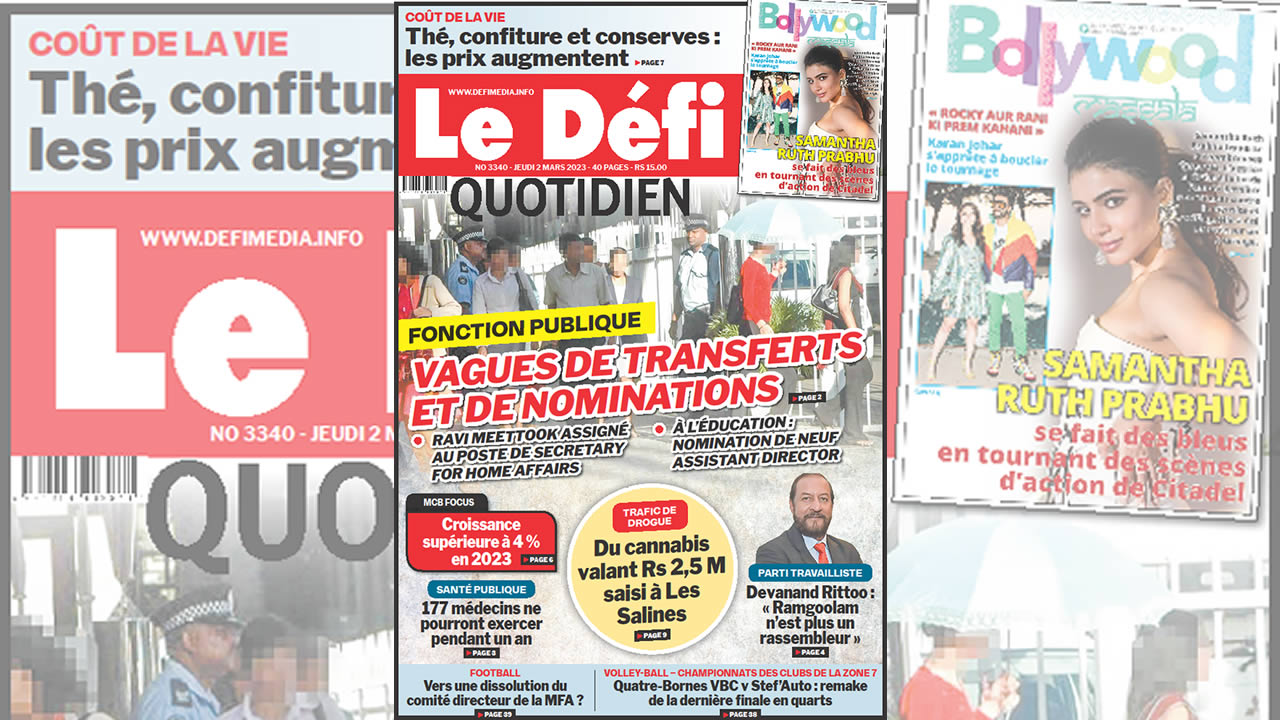 ? Voici la Une du Défi Quotidien. Le journal est en vente à Rs 15 l'exemplaire aux endroits habituels (supermarchés, boutiques, tabagies, superettes). Bonne lecture !