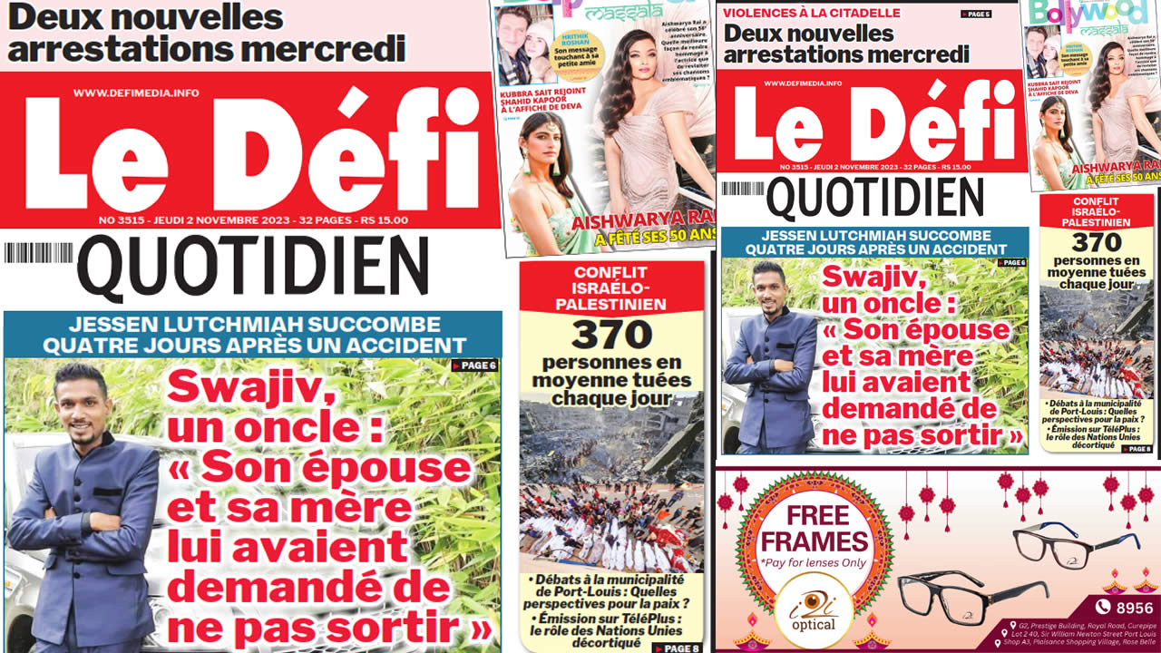 ? Voici la Une du Défi Quotidien. Le journal est en vente à Rs 15 l'exemplaire aux endroits habituels (supermarchés, boutiques, tabagies, superettes). Bonne lecture !