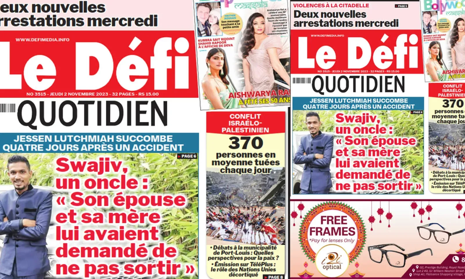 Voici la une du Défi Quotidien de ce Jeudi 02 Novembre 2023