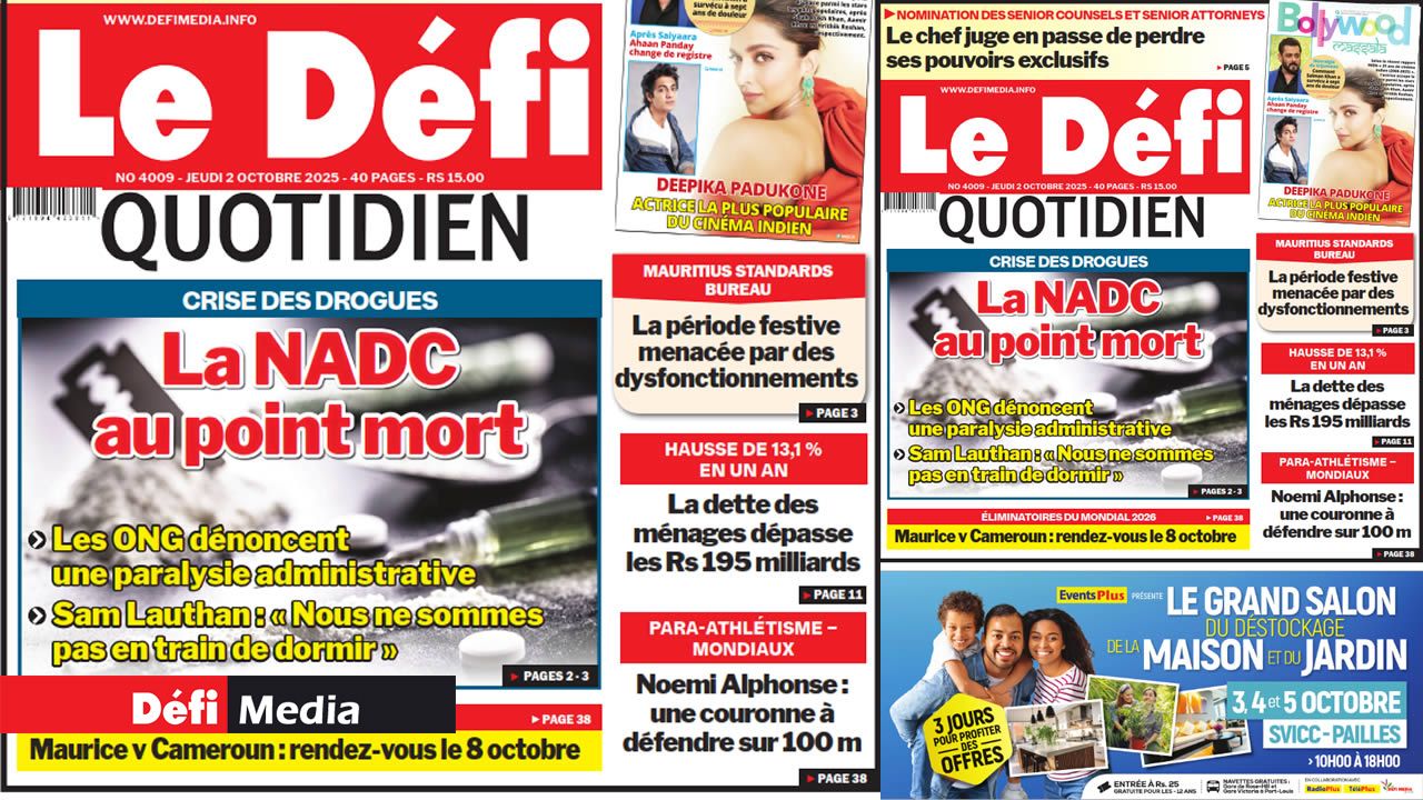 ? Voici la Une du Défi Quotidien. Le journal est en vente à Rs 15 l'exemplaire aux endroits habituels (supermarchés, boutiques, tabagies, superettes). Bonne lecture !
