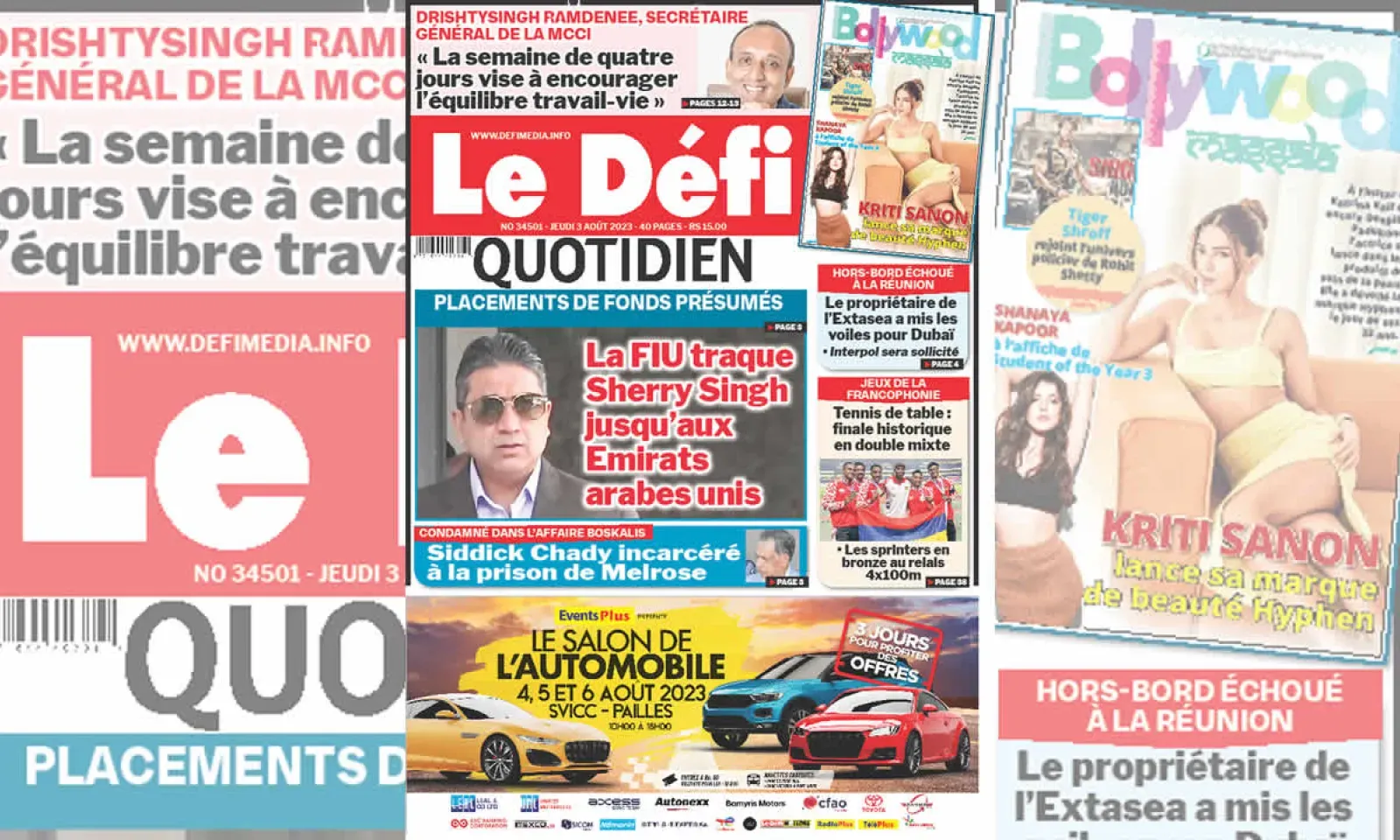 ? Voici la Une du Défi Quotidien. Le journal est en vente à Rs 15 l'exemplaire aux endroits habituels (supermarchés, boutiques, tabagies, superettes). Bonne lecture !