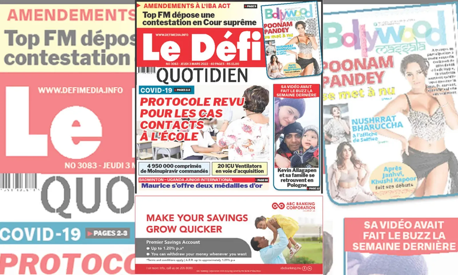 ? Voici la Une du Défi Quotidien. Le journal est en vente à Rs 15 l'exemplaire aux endroits habituels (supermarchés, boutiques, tabagies, superettes). Bonne lecture !
