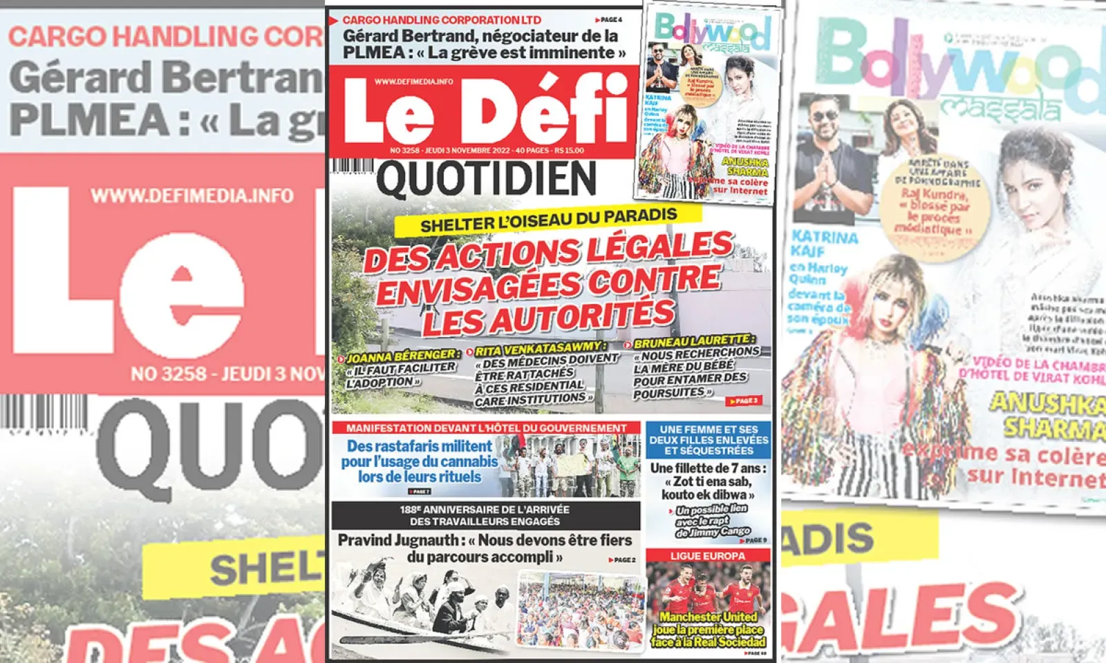 ? Voici la Une du Défi Quotidien. Le journal est en vente à Rs 15 l'exemplaire aux endroits habituels (supermarchés, boutiques, tabagies, superettes). Bonne lecture !