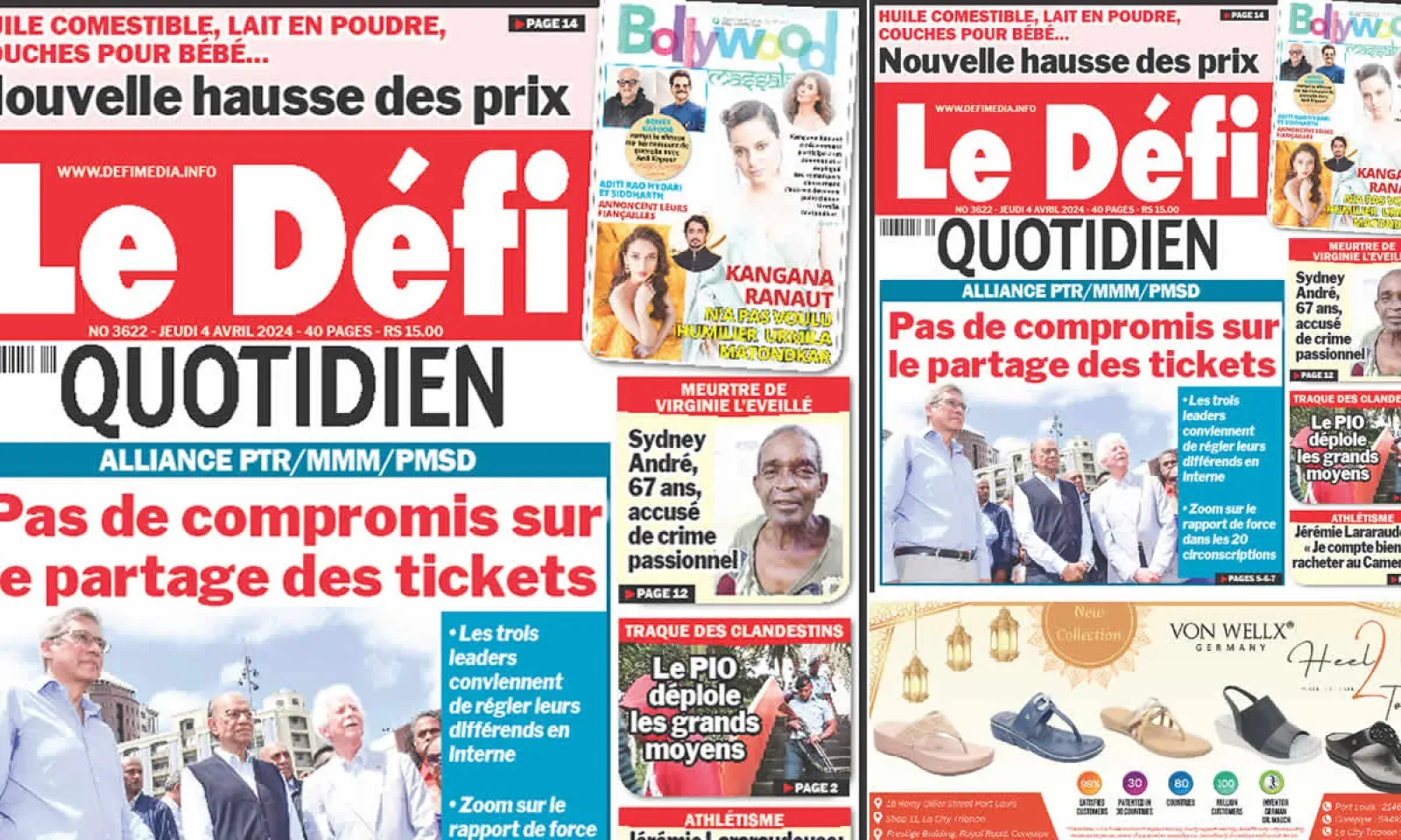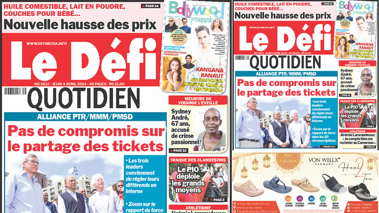 ? Voici la Une du Défi Quotidien. Le journal est en vente à Rs 15 l'exemplaire aux endroits habituels (supermarchés, boutiques, tabagies, superettes). Bonne lecture !