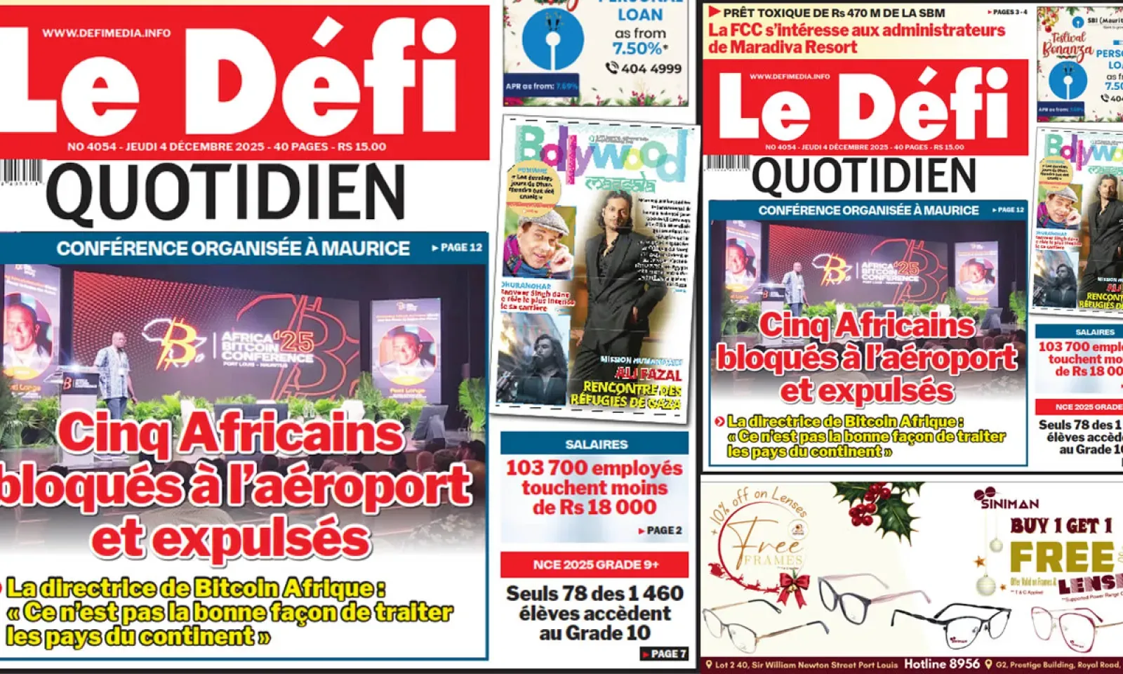 Voici la Une du Défi Quotidien. Le journal est en vente à Rs 15 l'exemplaire aux endroits habituels (supermarchés, boutiques, tabagies, superettes). Bonne lecture !