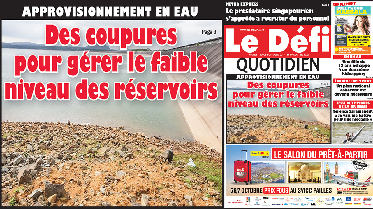 Voici la Une du Defi Quotidien de ce jeudi 04 Octobre 2018