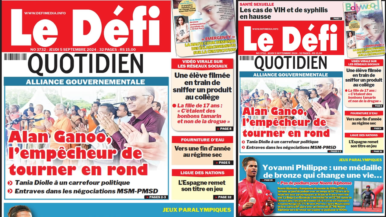 ? Voici la Une du Défi Quotidien. Le journal est en vente à Rs 15 l'exemplaire aux endroits habituels (supermarchés, boutiques, tabagies, superettes). Bonne lecture !