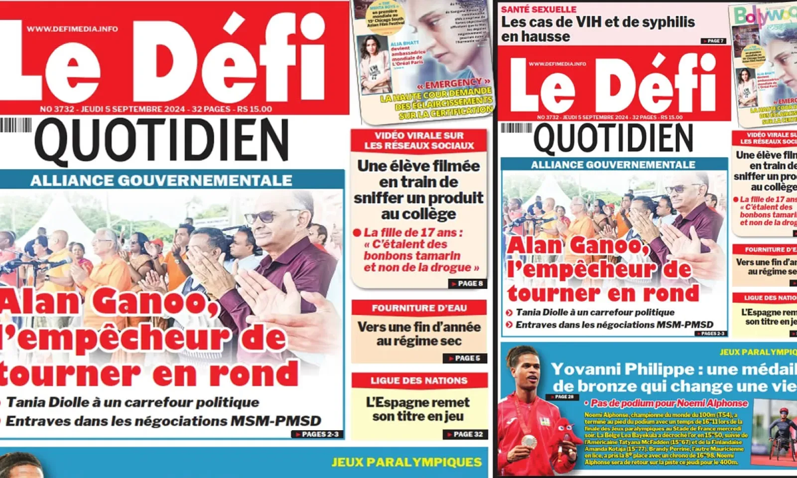 Voici la une du Défi Quotidien de ce Jeudi 05 Septembre 2024
