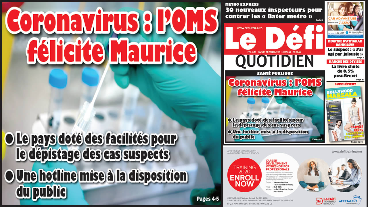 Santé publique - Coronavirus : l’OMS félicite Maurice