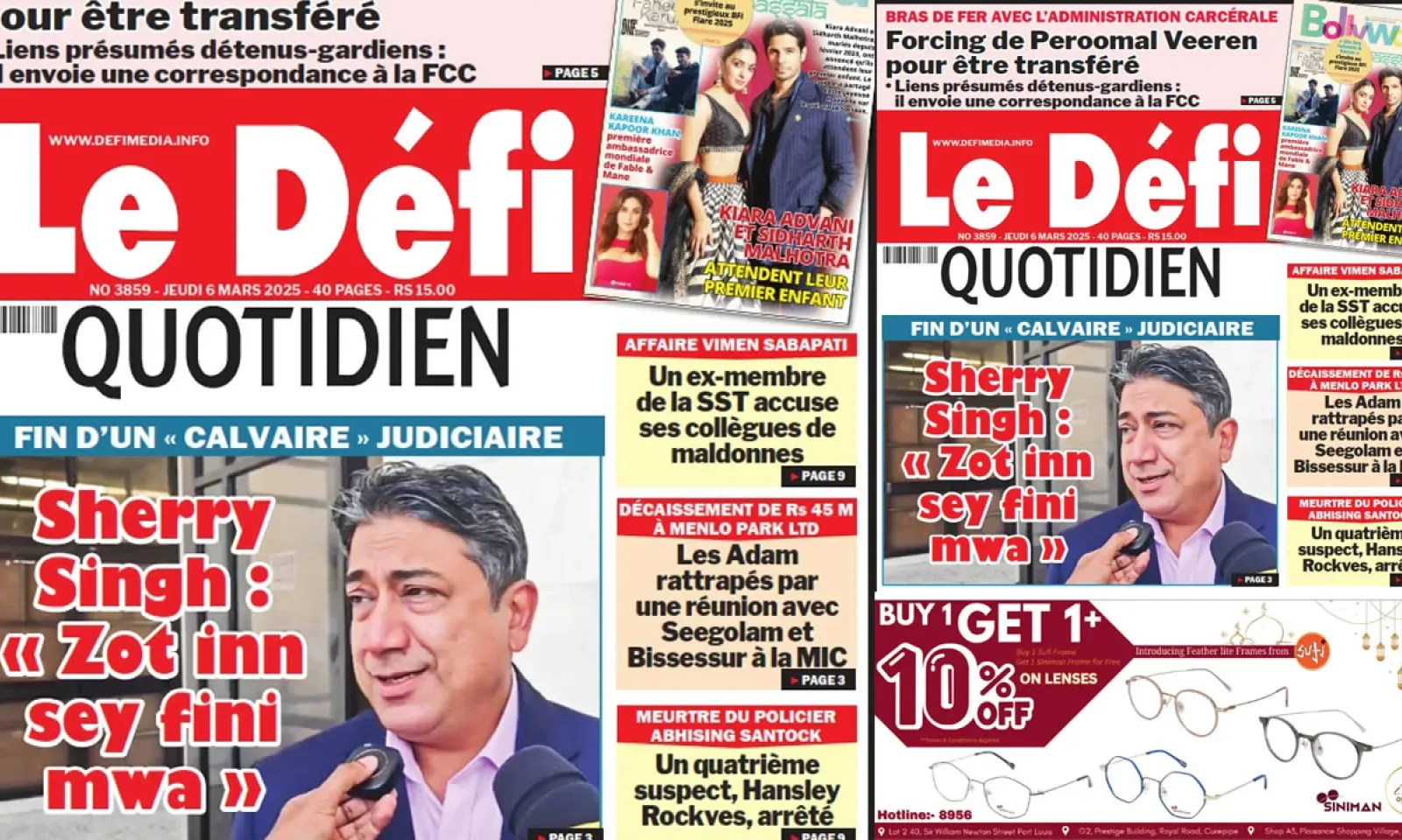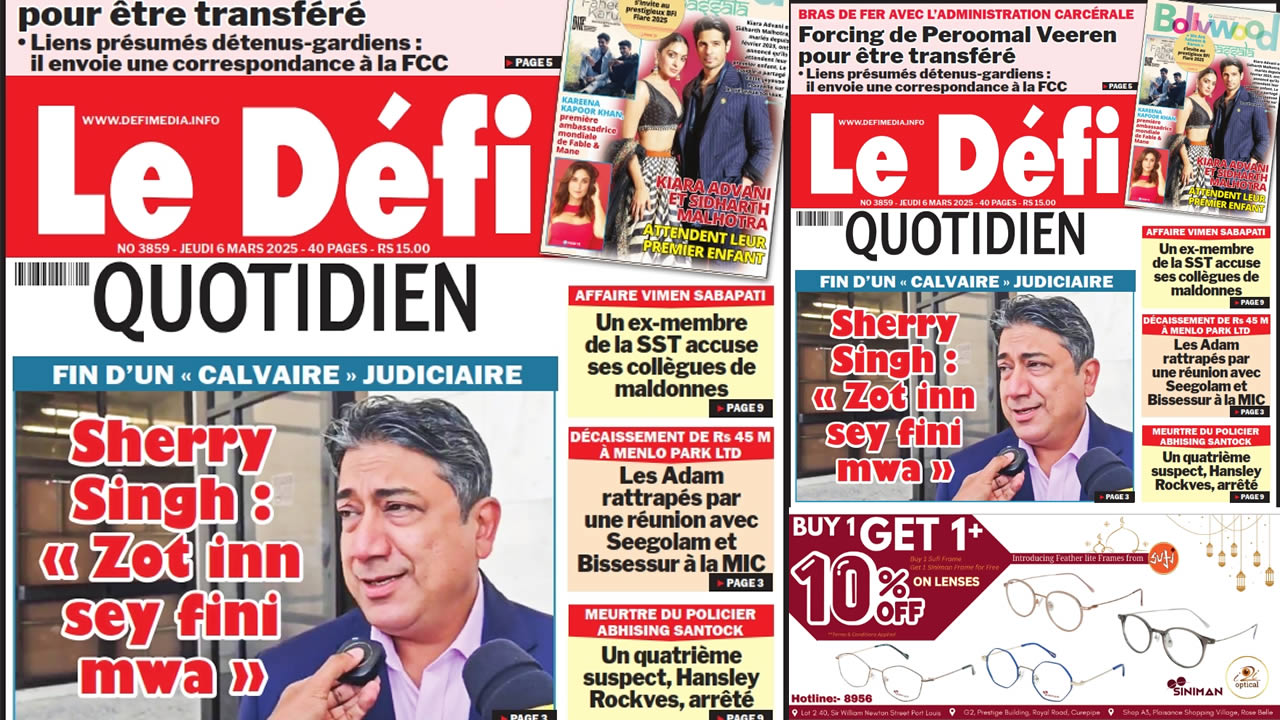 ? Voici la Une du Défi Quotidien. Le journal est en vente à Rs 15 l'exemplaire aux endroits habituels (supermarchés, boutiques, tabagies, superettes). Bonne lecture !