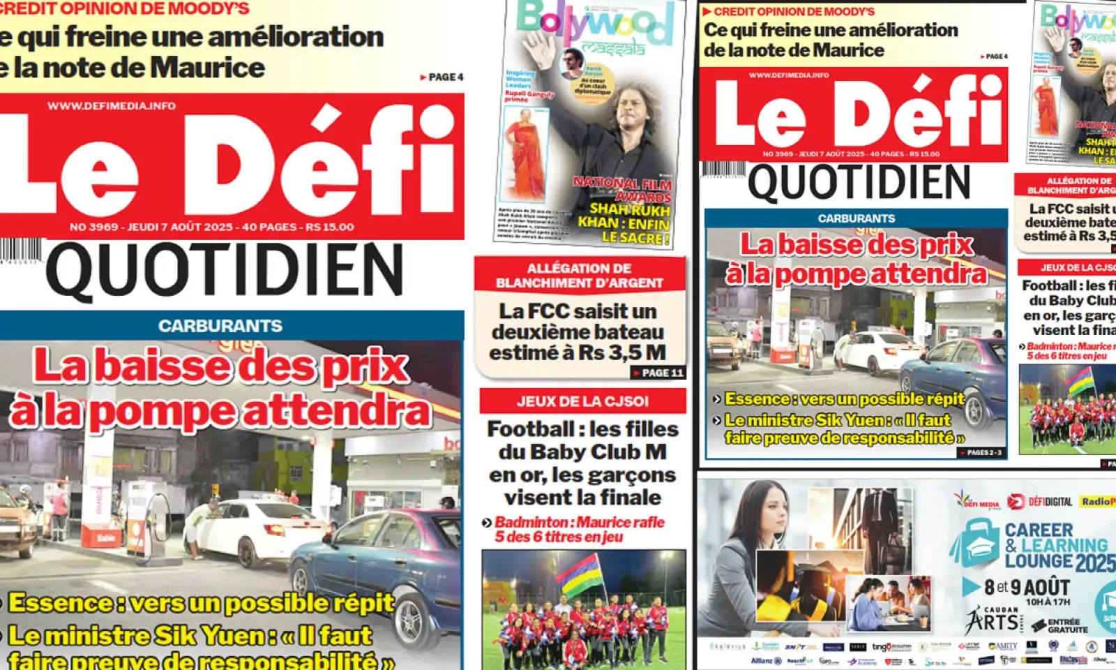 ? Voici la Une du Défi Quotidien. Le journal est en vente à Rs 15 l'exemplaire aux endroits habituels (supermarchés, boutiques, tabagies, superettes). Bonne lecture !