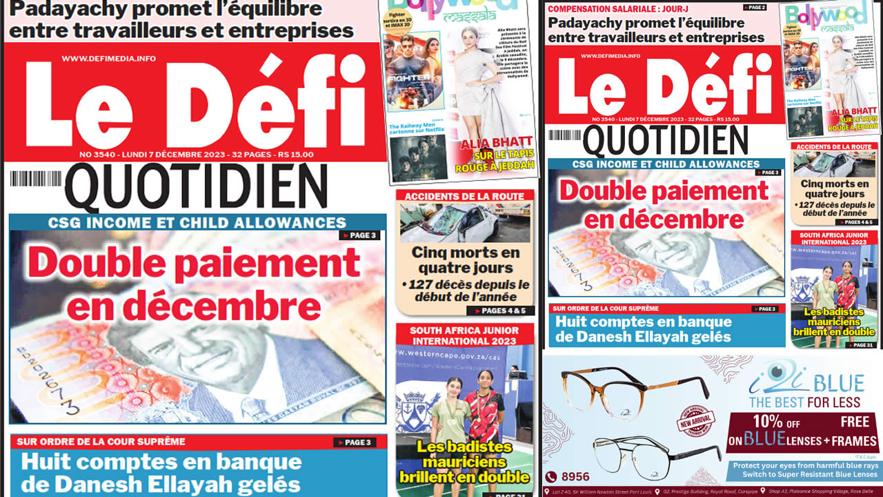 ? Voici la Une du Défi Quotidien. Le journal est en vente à Rs 15 l'exemplaire aux endroits habituels (supermarchés, boutiques, tabagies, superettes). Bonne lecture !