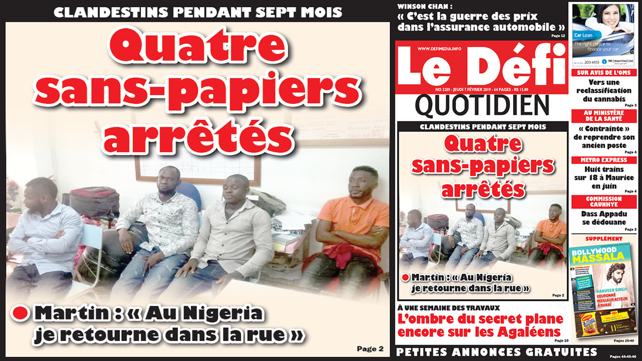 Voici la Une du Defi Quotidien de ce jeudi 07 Février 2019 :