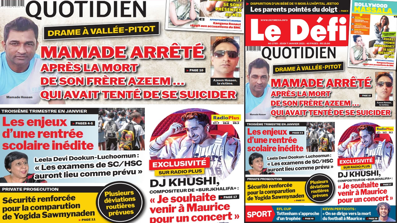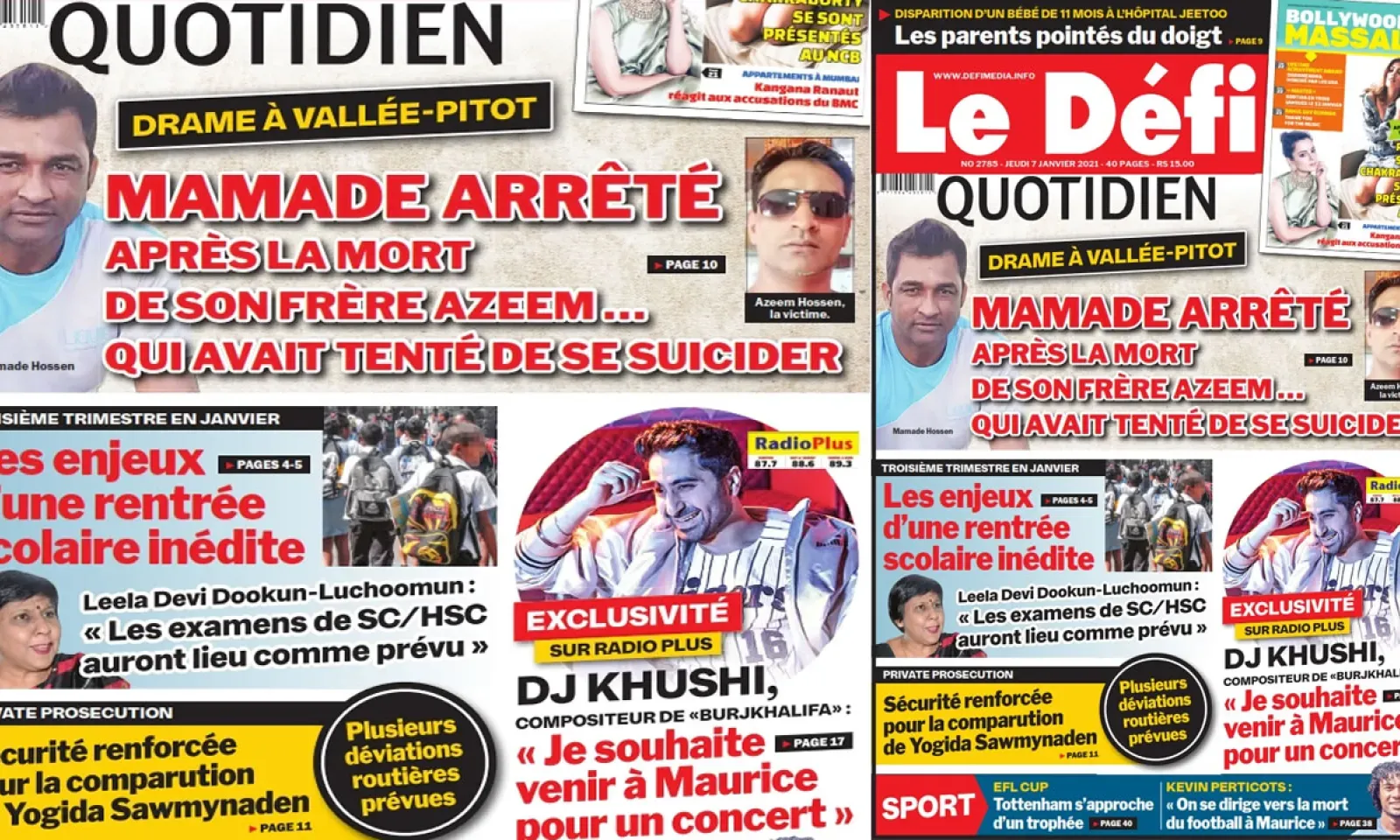 ? Voici la Une du Défi Quotidien. Le journal est en vente à Rs 15 l'exemplaire aux endroits habituels (supermarchés, boutiques, tabagies, superettes). Bonne lecture !