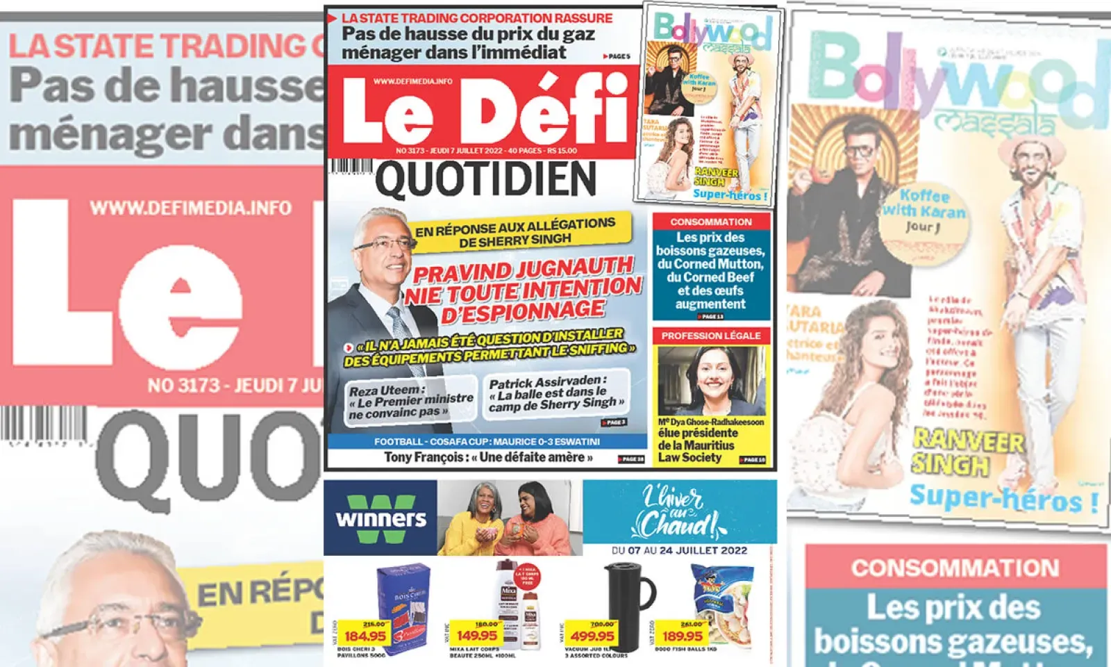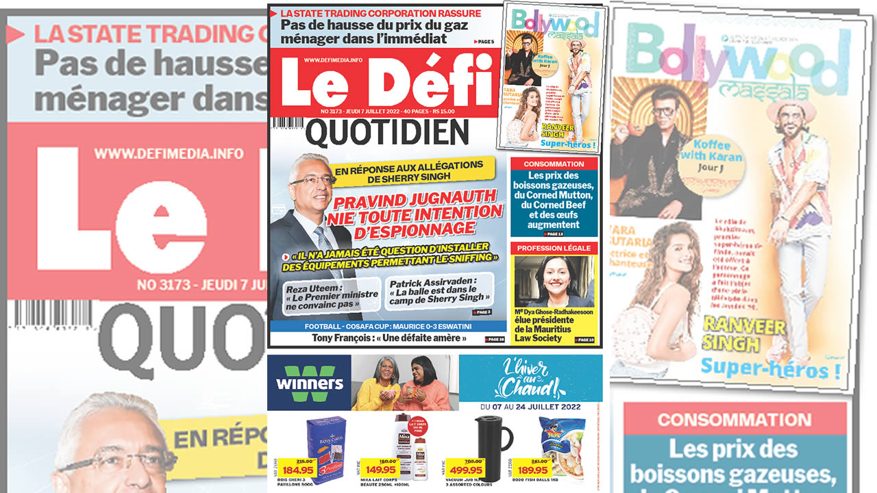 ? Voici la Une du Défi Quotidien. Le journal est en vente à Rs 15 l'exemplaire aux endroits habituels (supermarchés, boutiques, tabagies, superettes). Bonne lecture !